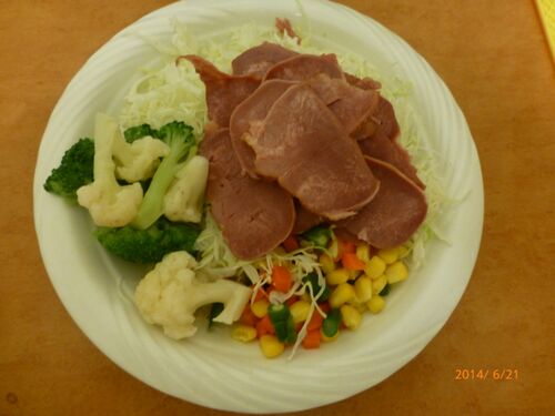 八王子 曇り、サバ缶、タンスモーク、キャベツ、冷凍野菜などを組み合わせた、酒の肴です。サバ缶には豆板醤と乾燥ネギの薬味、サラダはキャベツとスモークタンと冷凍野菜の組み合わせです。焼酎も切れ、霧島を購入です。シメはカッピウヌードルでごちそうさ…