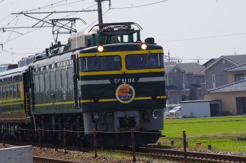 金沢 雨、無事、東京から帰ってきましたが、金沢は雨です。まぁ植木の水遣りの手間が省けます(笑)おかえり祭りの帰りに、いきなり「トワイライト色」に遭遇し、線路沿いを先回りし何とか撮れました。後でネットで調べてみると「サロンカーなにわ」がEF81-1…