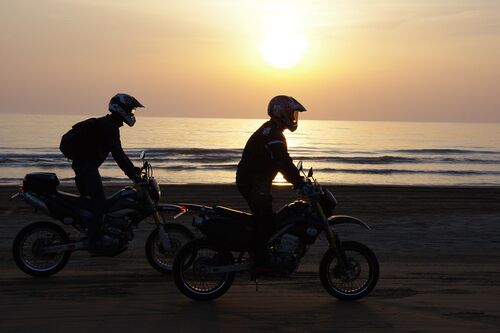 金沢 曇り、夜は雨の予報ですがまだ降ってません。SSTR(サンライズ・サンセット・ツーリング・ラリー)は、夕日のライダー、早くも来年が楽しみです(笑)【撮影場所 千里浜なぎさドライブウェイ:2017年05月21日 E-PL6】にほんブログ村