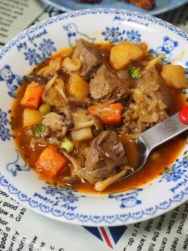 金沢 晴れ、いい天気で、過ごしやすいのですが、なにかと忙しく遅くまりました、昨日は、日中に雨が降り、夜は肌寒く暖かなおかずです。久々の「ボルシチ」で、いろいろな具材が入っており、美味しくいただきました(笑)【撮影場所 自宅:2019年09月24日 OL…
