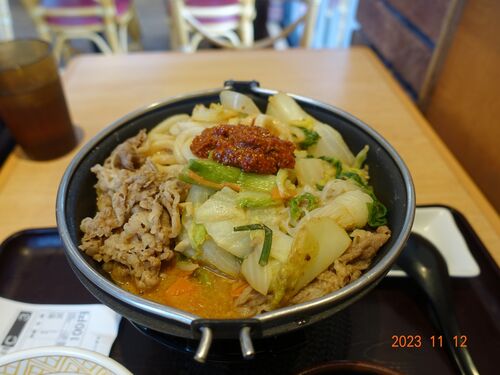 金沢 曇り、先ほどまで雨が降っていたのですが今は止んでます。 日曜日は寒かったので、すき家の肉味噌「旨辛」牛担々鍋を食べました。贅沢に+肉2倍で「旨辛」をおいしくいただきました(笑)【すき家HP引用】『肉味噌牛担々鍋』は、胡麻の旨みあふれる担々…