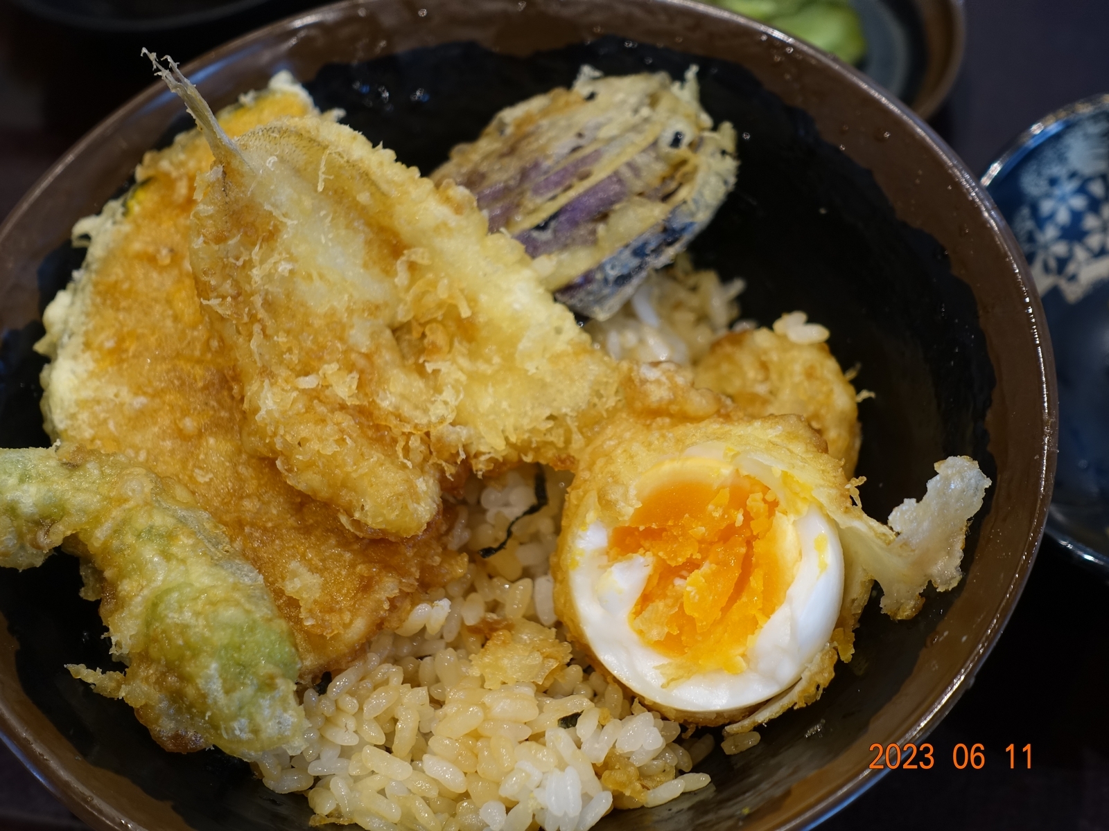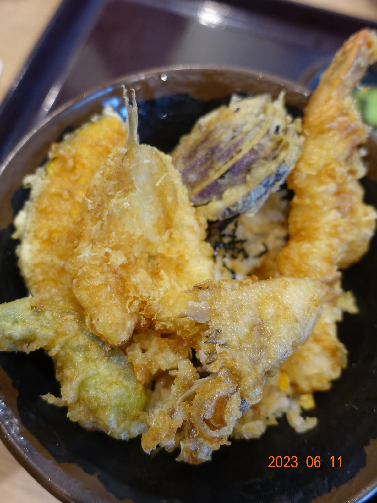 2023-06-13 天ぷら喜久や「上天丼」 🏠 マイペースな日常 金沢 曇り、今日もすっきりしない天気で、金沢でも日曜日から梅雨入りしたみたいです。 日曜日は、六十三歳の誕生日で、ちょっと贅沢な昼食でした。天ぷら喜久や「上天丼」海老2本・キス天・玉子・野菜4品で、味噌汁付きを美味しく頂きました(笑)【撮影場所 天ぷら喜久や「イオンモール白山店」:2023年06月11日 DSC-RX100M3】 ランキング参加中でもう一押しお願いします