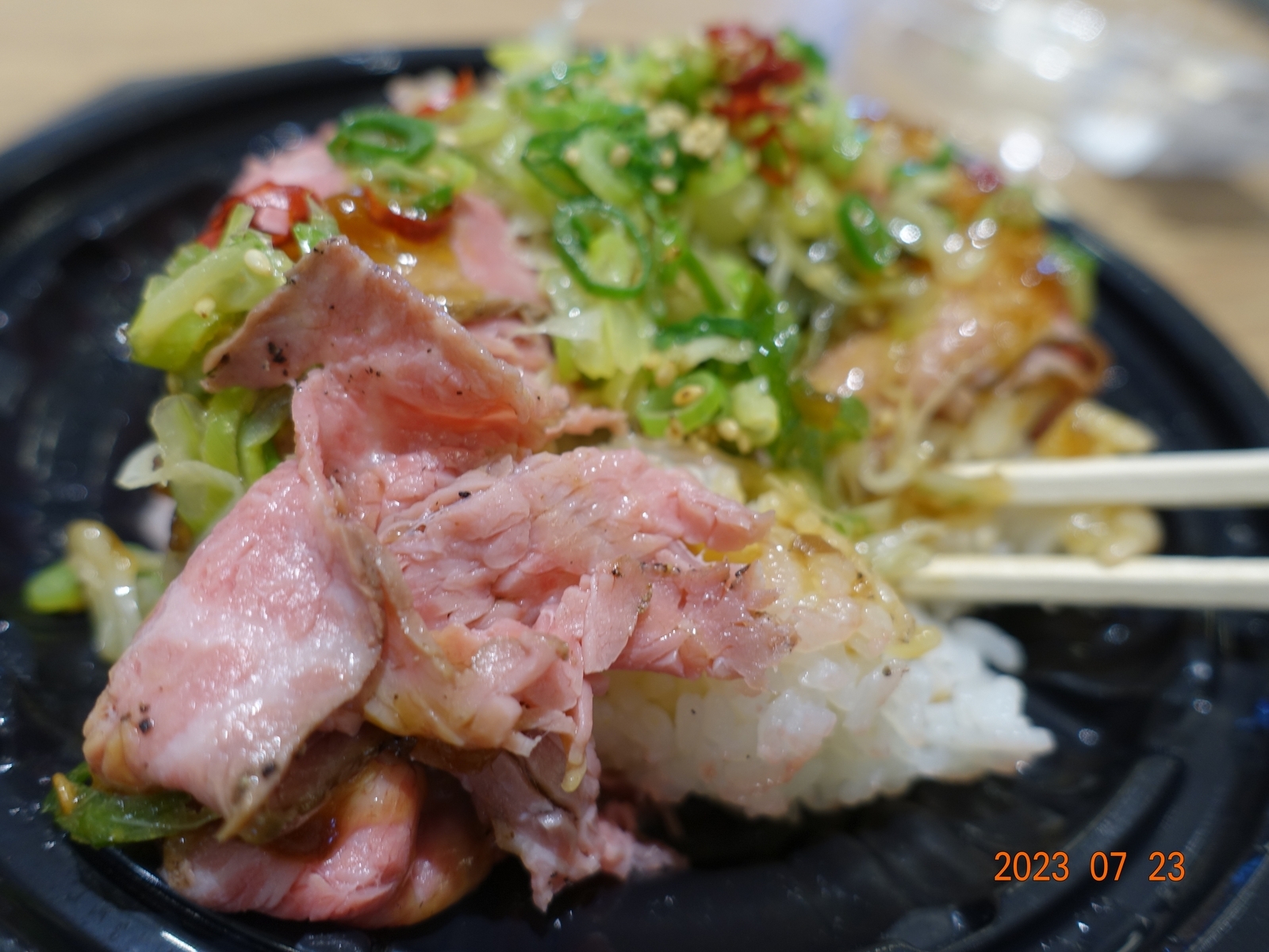 2023-07-26 ごま香る葱のせローストビーフ丼 ヒトカタケ 金沢 晴れ、今日も暑く今夜も暑くさらに明日からも暑くなりそうで嫌になってきてます(笑) 休日の手軽昼食ですが夏バテ防止でガッツリ系を美味しく頂きました。【撮影場所 イオンスタイル白山:2023年07月23日 DSC-RX100M3】 ランキング参加中でもう一押しお願いします