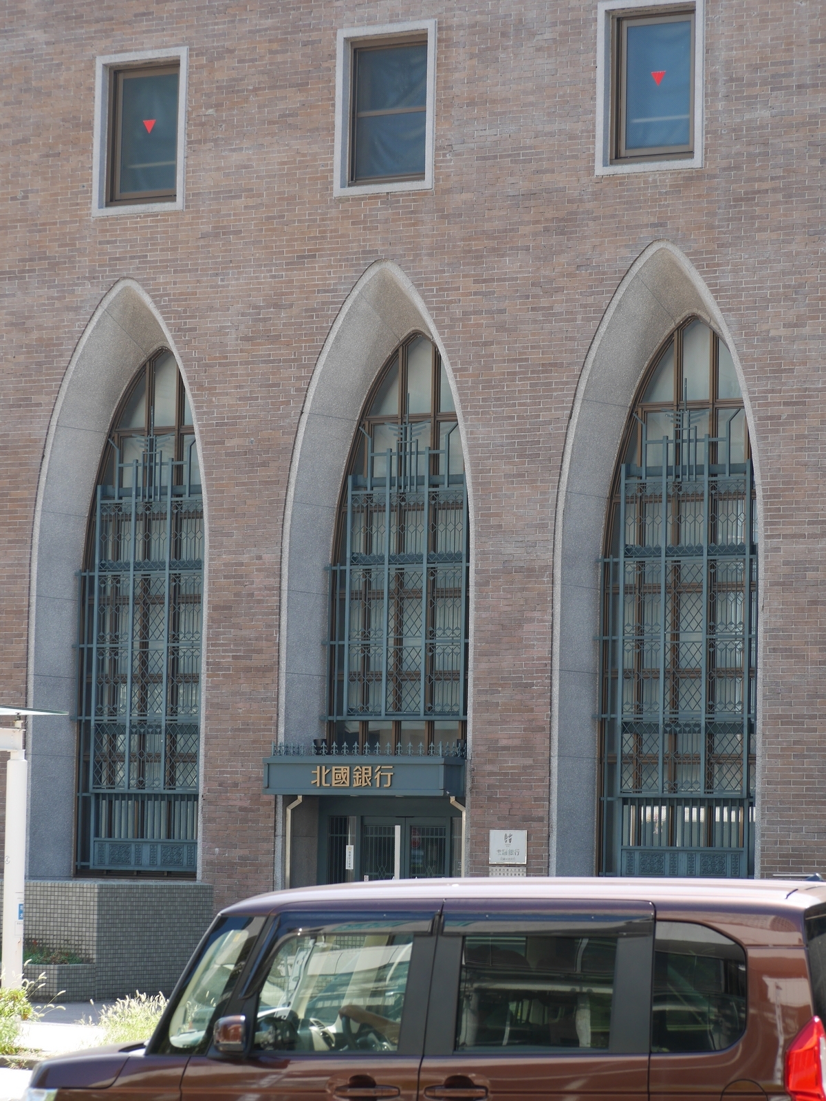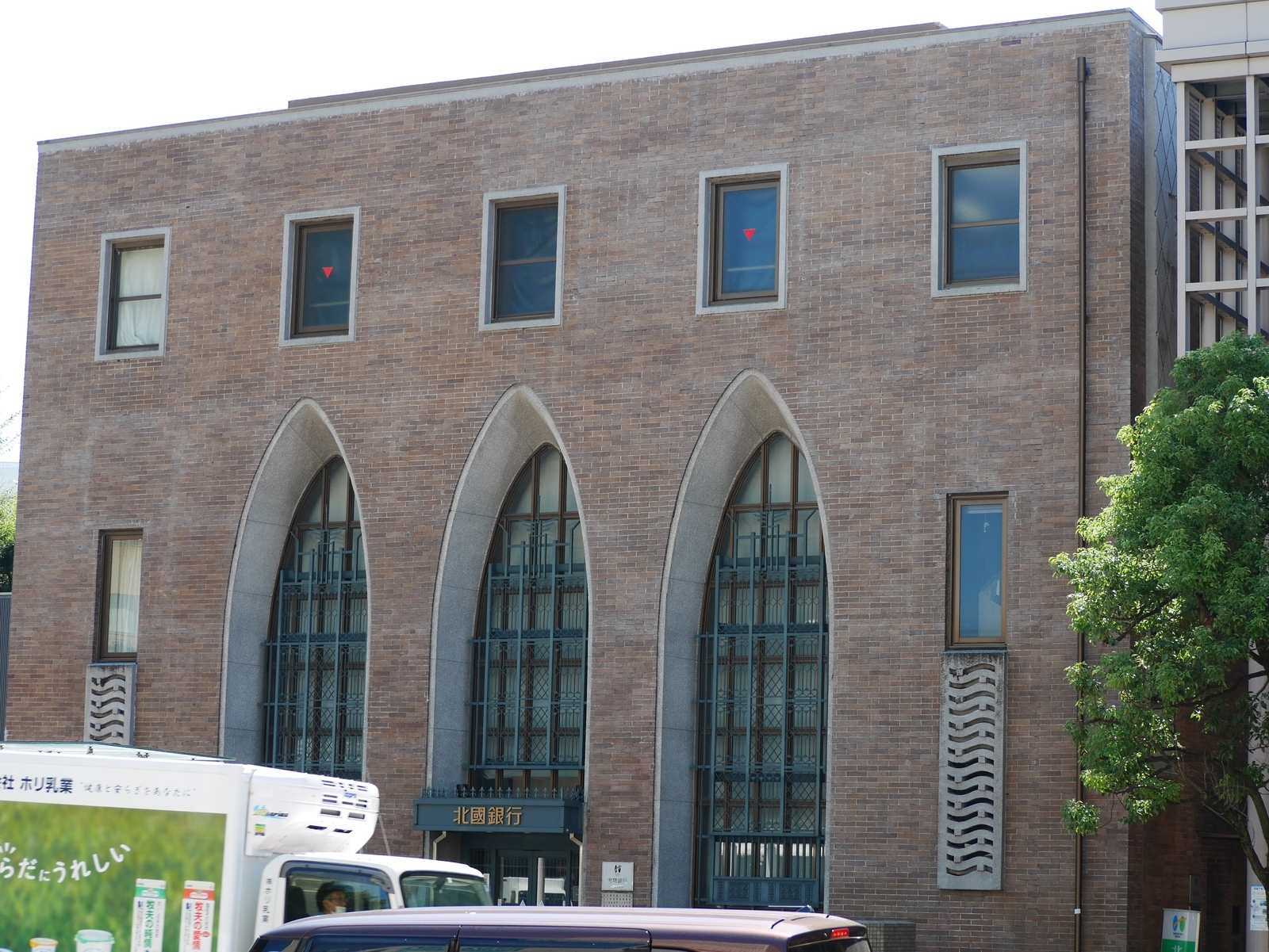 2023-08-12 街をあるけば「北國銀行武蔵ヶ辻支店」 🏯 金沢おもしろ発掘 金沢 晴れ、今日も暑くなりそうです。北國銀行武蔵ヶ辻支店は、日本建築界の巨匠・村野藤吾の設計で砲弾状の三連アーチ、プレキャストコンクリートのルーバーなど個性的で自由な造形で、中も一度はじっくり見たいです(笑)kanazawa10no3.hatenablog.com【金沢市HP引用】建築家村野藤吾の若き日の貴重な作品。昭和7年に北国銀行武蔵ヶ辻支店として建造されました。近江町市場の再開発に伴い、曵家(建物を基礎ごと持ち上げ「ころ」を使って移動すること)により、1日に6〜7メートル、5日間で約20メートルゆっくり現在の位置へとお引っ越し。同時に、エムザの方向に向いていた正面も、金沢駅へと続く道にほんの少し向きを変えています。kanazawa10no3.hatenablog.comkanazawa10no3.hatenablog.com【撮影場所 金沢市近江町市場:2023年08月05日LUMIX GM1、M.ZUIKO DIGITAL ED 40-150mm F4.0-5.6】ランキング参加中でもう一押しお願いします