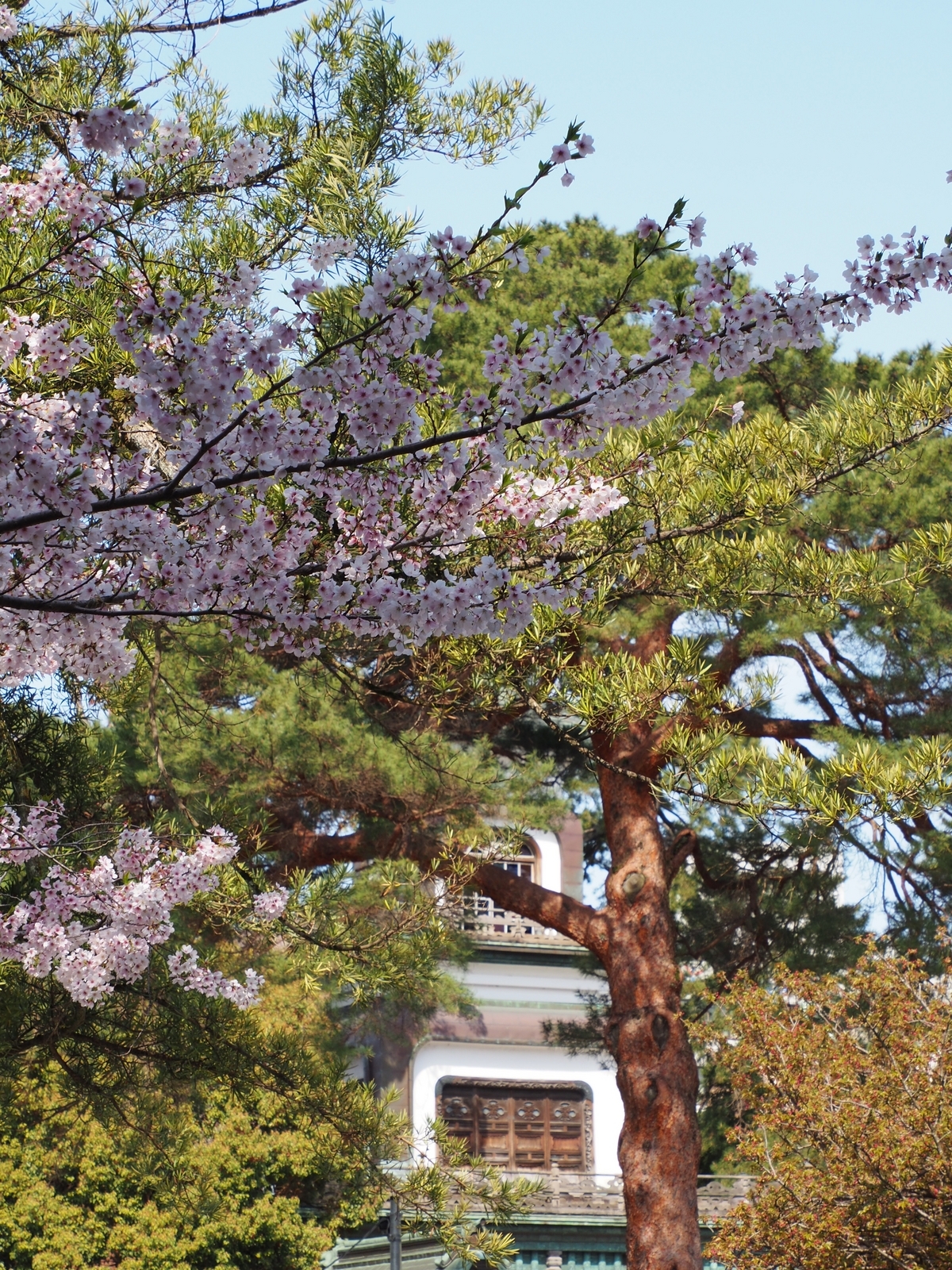 2024-04-21 尾山神社の桜「ソメイヨシノ」と菊桜の開花 🏯 金沢おもしろ発掘 金沢 曇り、夕方から雨の予報です。尾山神社の「菊桜」の開花(真中付近左側の赤い花)が始まってました。「ソメイヨシノ」は満開で、それなりに楽しめました(笑) 尾山神社の菊桜は、江戸時代後期に加賀藩主前田家が京都御所から拝領したと伝えられる桜で、国の天然記念物に指定されている「兼六園菊桜」の子孫にあたります。 kanazawa10no3.hatenablog.com尾山神社の境内には、国の重要文化財に指定されている「神門」があります。神門は和漢洋の3つの建築様式が用いられた珍しい門で、最上階にはめ込まれたステンドグラスが特に印象的です。 kanazawa10no3.hatenablog.com【撮影場所 金沢市尾山神社:2024年04月13日 E-M10MarkⅡ】ランキング参加中でもう一押しお願いします