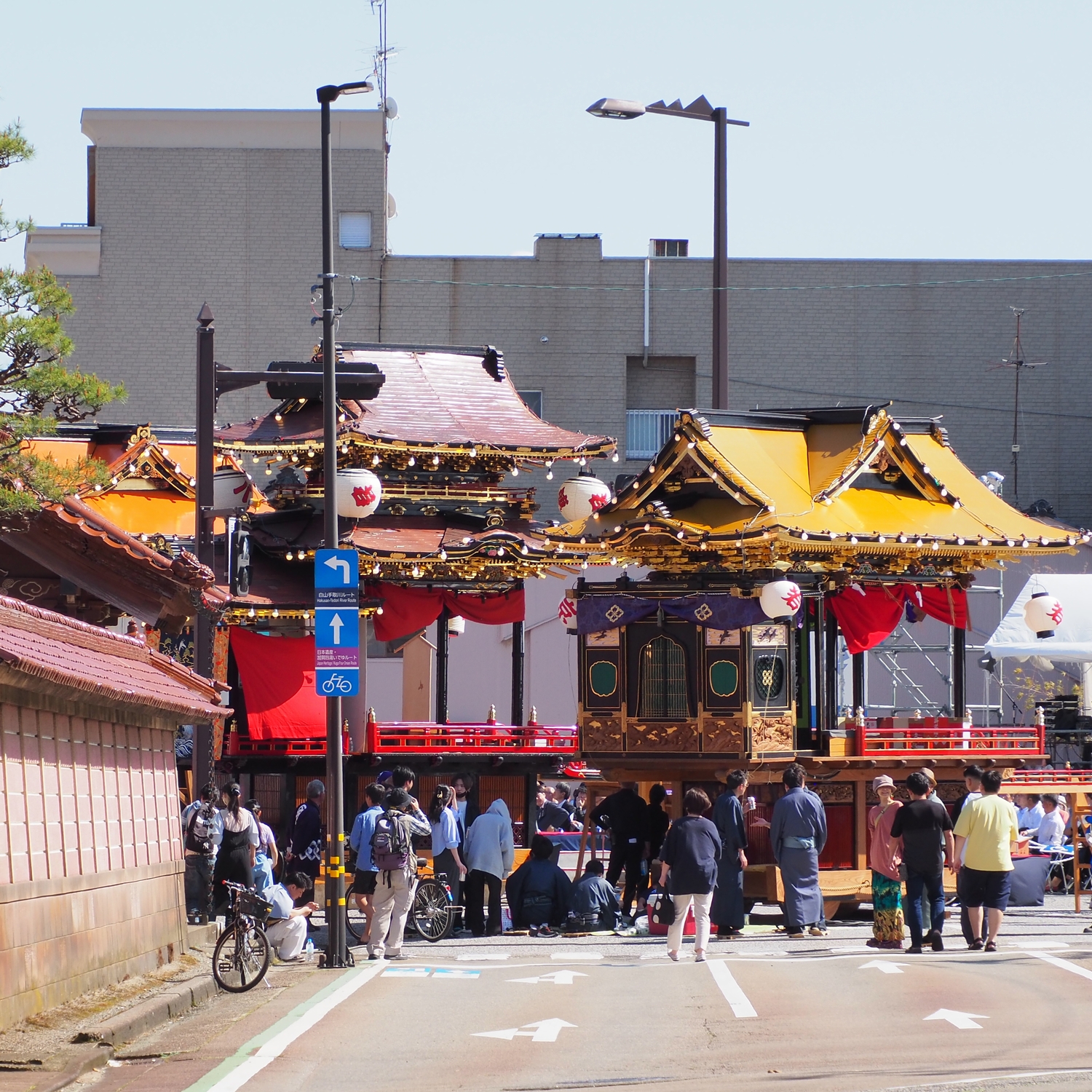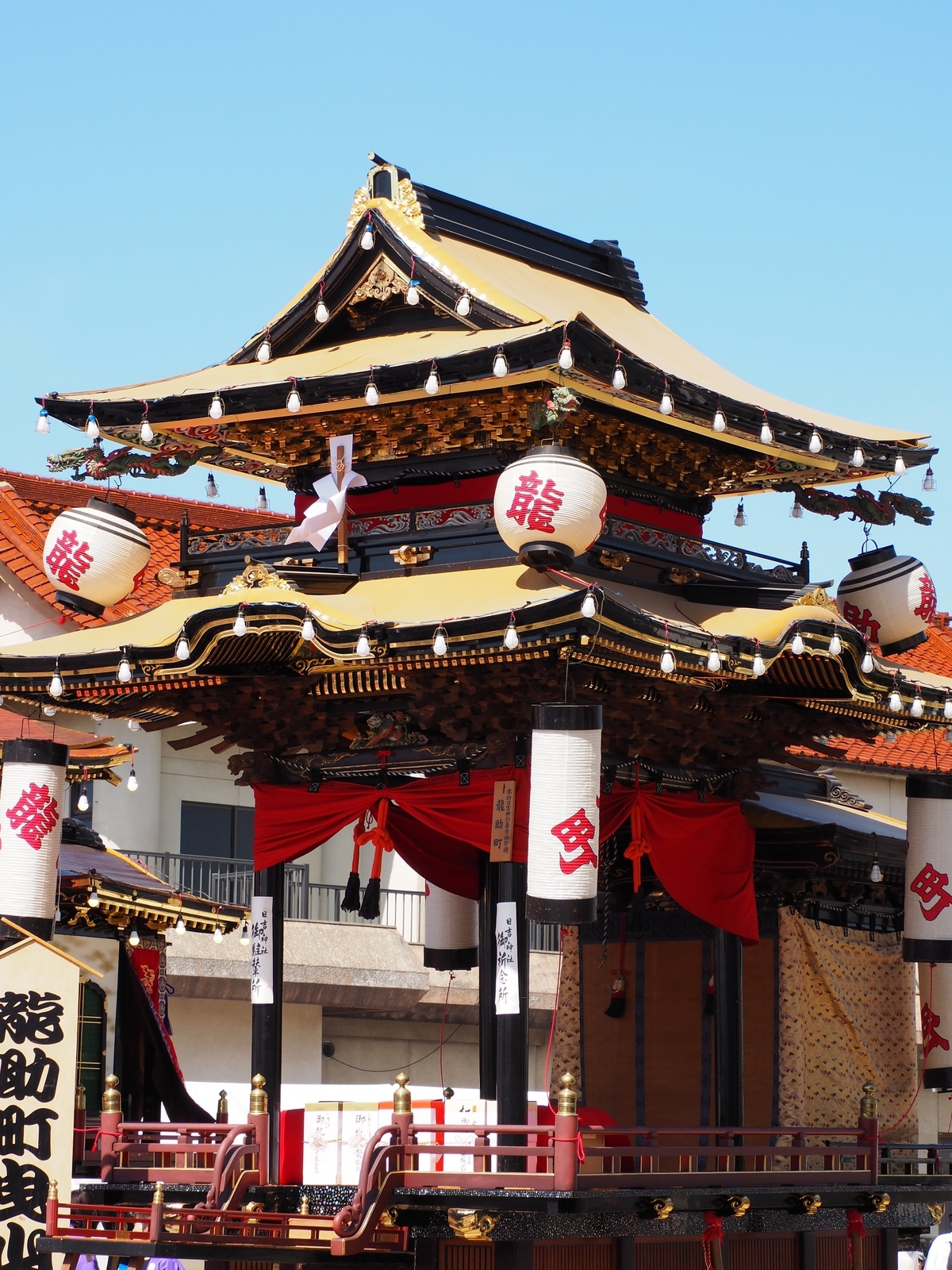 子供歌舞伎を撮りたくて行ってきました。日曜日は天気が崩れる予報で、「曳山八基曳揃え」が行われる土曜日行ってきました(笑)5月11日に行われた今年の曳揃えには、昨年参加予定だった6町に、当番町の材木町が加わった計7町が参加しましたが、中町は人手不足のため今年も参加できませんでした。曳山は高さ約15メートル、重さ約20トンもあり、豪華絢爛な彫刻や金箔で飾られています。各町ごとに異なるデザインの曳山は、まさに圧巻です。