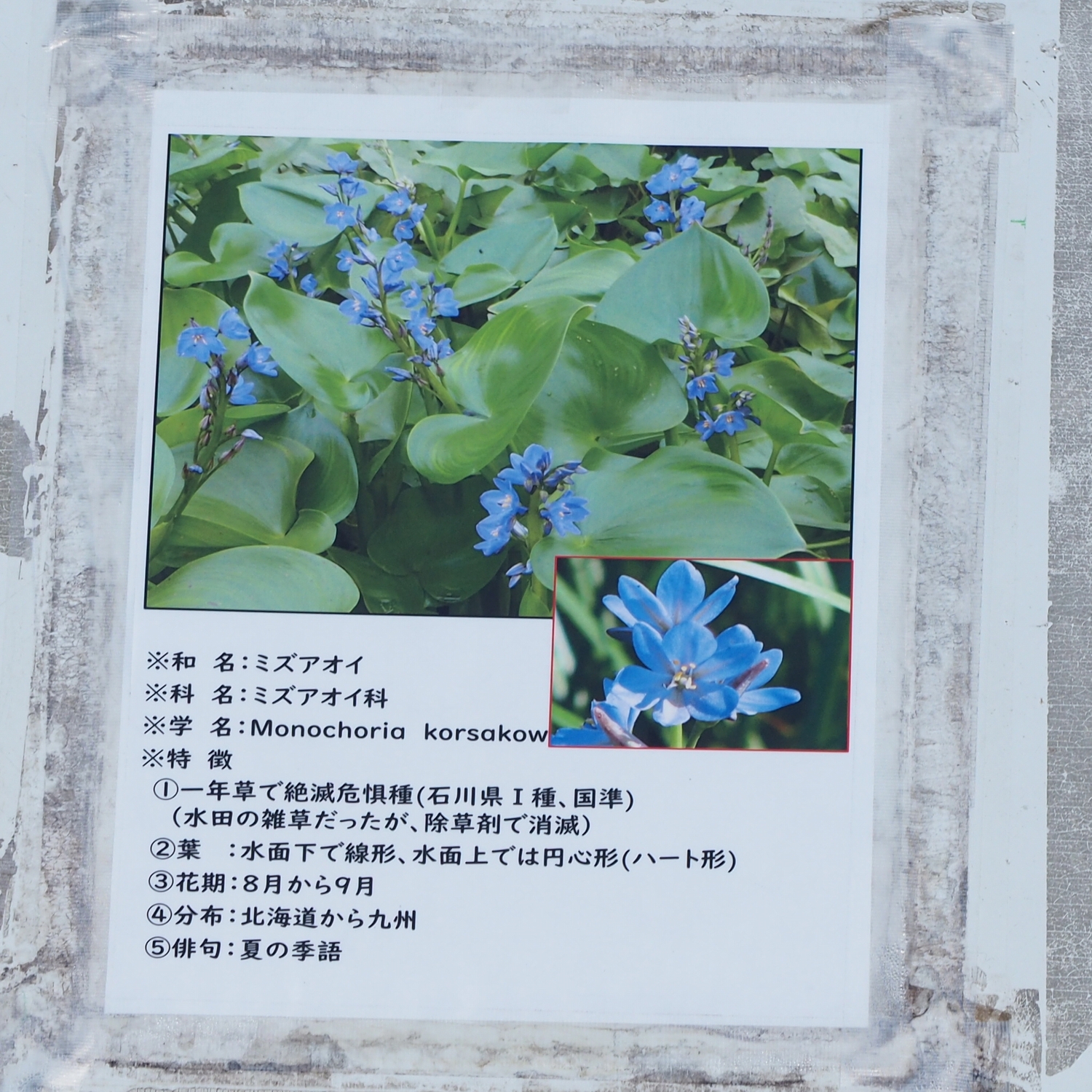 かつては全国各地で見られたミズアオイですが、近年は生育環境の悪化などにより数が減少しており、貴重な存在となっています。木場潟では、保護活動が行われ、多くのミズアオイが花を咲かせています。