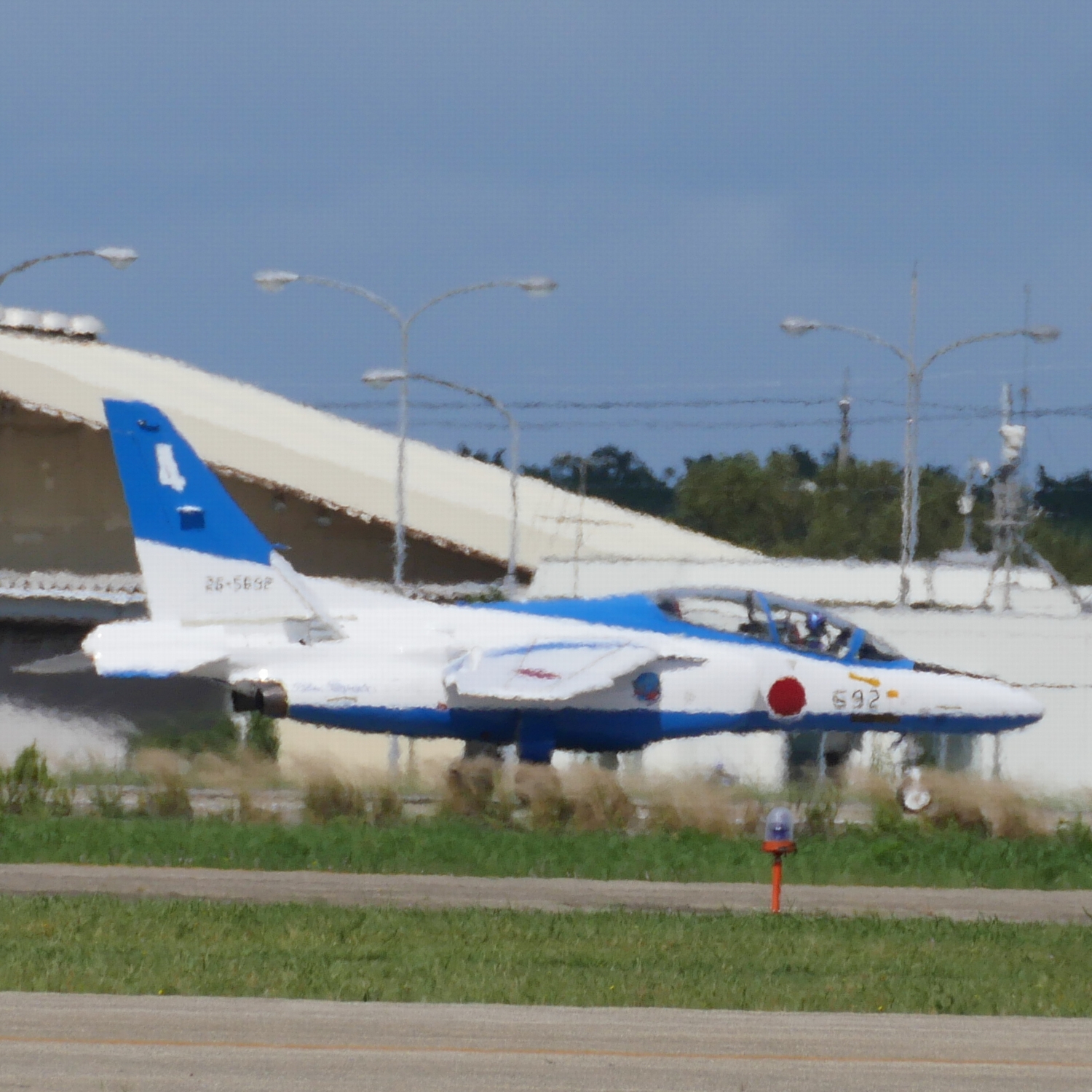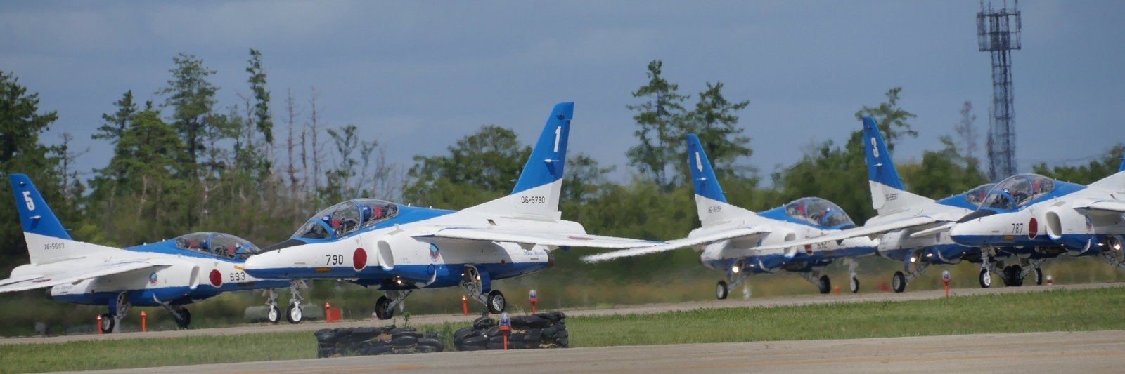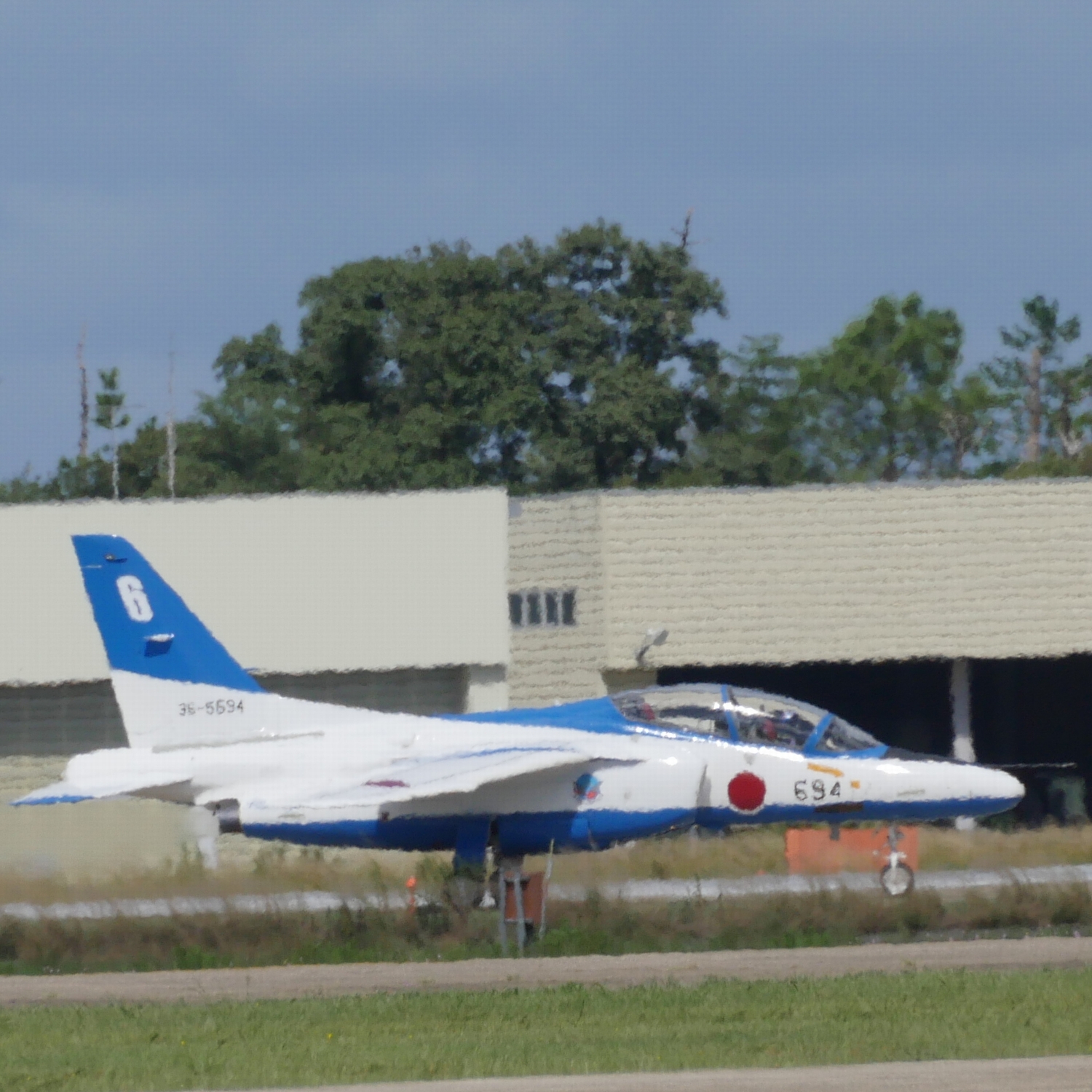小松基地航空祭2024は、能登地方の大雨被害への対応のため、規模を縮小して開催されました。ブルーインパルスの飛行展示は、 毎年恒例の目玉ですが、今回は機動飛行は実施されず、航過飛行となりました。