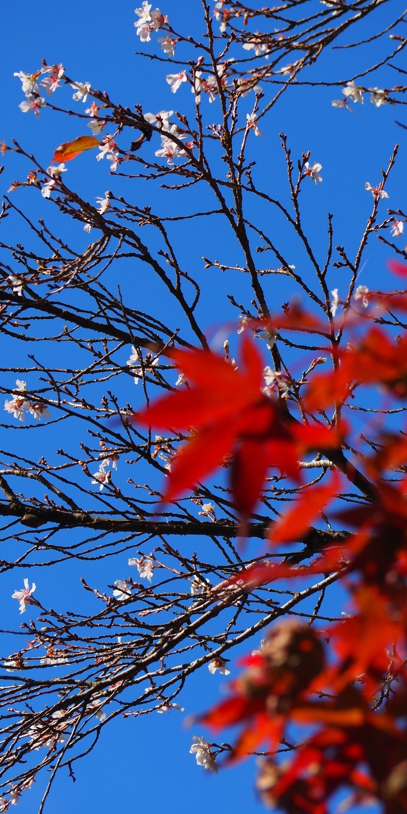 2024-11-14 紅葉と冬桜「天徳院」 🏯 金沢おもしろ発掘 🌸 金澤桜百景 金沢 晴れ、今日もいい天気になりそうです。いい天気が続ており、日曜日に紅葉と桜を撮りに来ました。まずは「天徳院」で、駐車場の脇で咲いており、毎年楽しみにしてます(笑)冬桜とは、一般的な桜の開花時期である春だけでなく、秋から冬にかけても花を咲かせる桜の総称です。春に咲く桜と比べて花数は少ないことが多いですが、紅葉した葉との美しいコントラストが特徴です。秋の10月頃から翌年の春にかけて、数回に分けて咲きます。品種によって開花時期は異なります。 一般的に白色の一重咲きですが、品種によってはピンク色や八重咲きもあります。花は春に咲く桜よりもやや小ぶりです。天徳院は、珠姫の法号にちなんで名付けられ、珠姫の遺骨が一時的に安置されていた場所でもあります。良縁や家庭円満のご祈願に訪れる人も多く、珠姫ゆかりの寺として親しまれています。 元禄時代に建てられた本堂をはじめ、多くの建物が国の重要文化財に指定されています。当時の建築様式を今に伝える貴重な存在です。 kanazawa10no3.hatenablog.com【撮影場所 金沢市天徳院:2024年11月10日 OM-D E-M10】