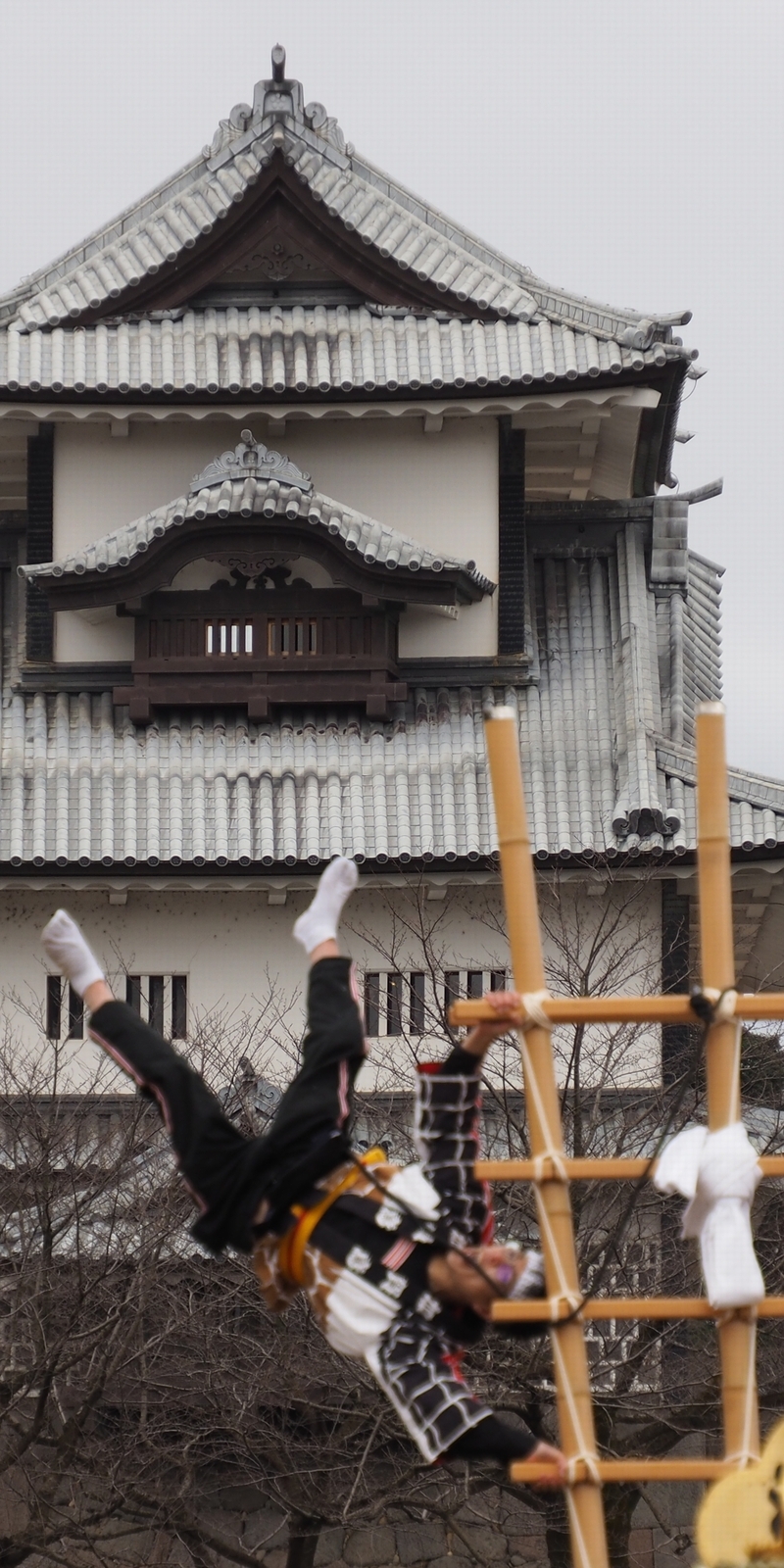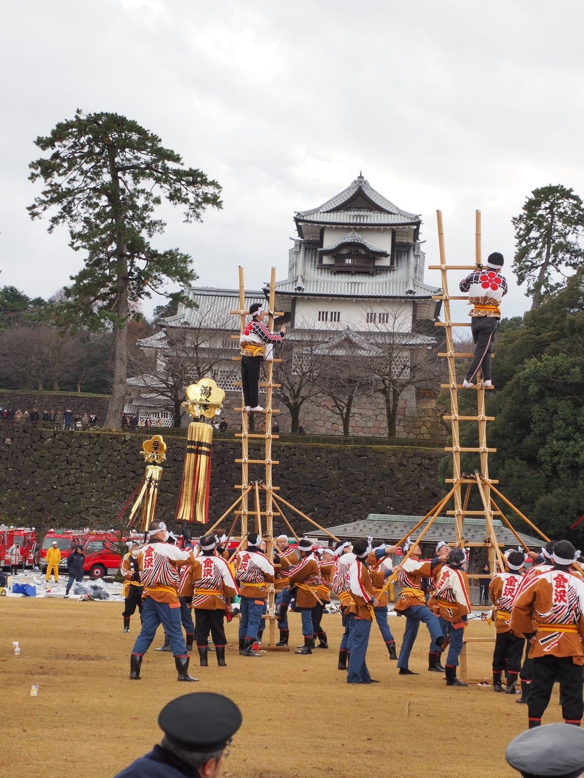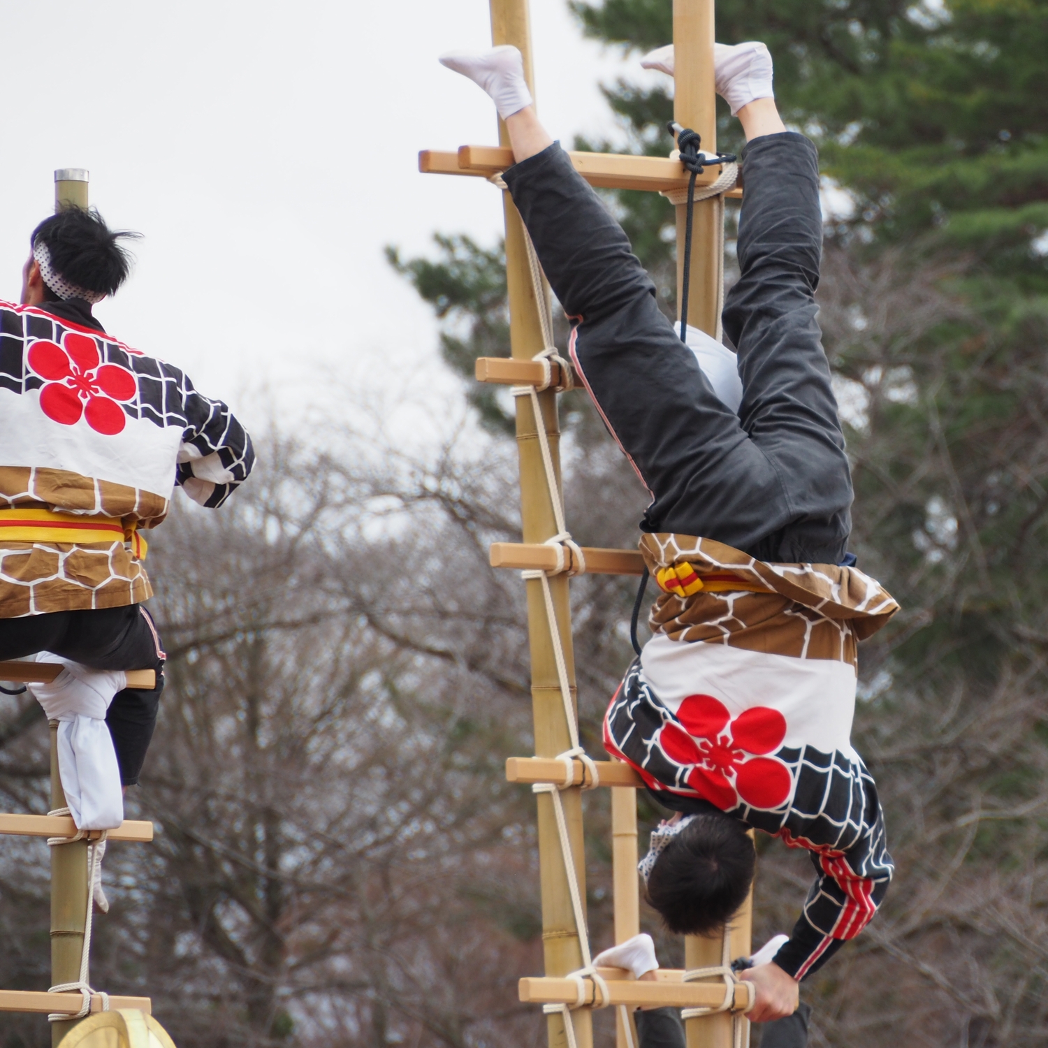 江戸時代、火災現場にはしごを立て、火事の状況を確かめたことが始で、金沢市を代表する伝統芸能の一つです。その華麗な技と勇猛な姿から多くの人々を魅了しています。