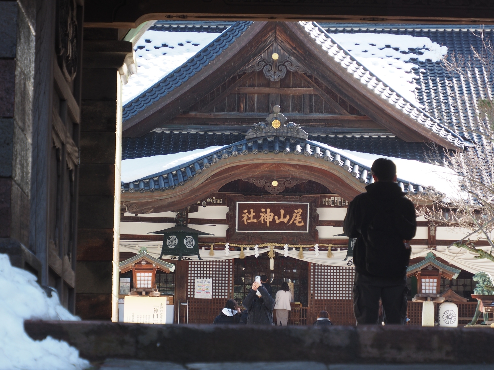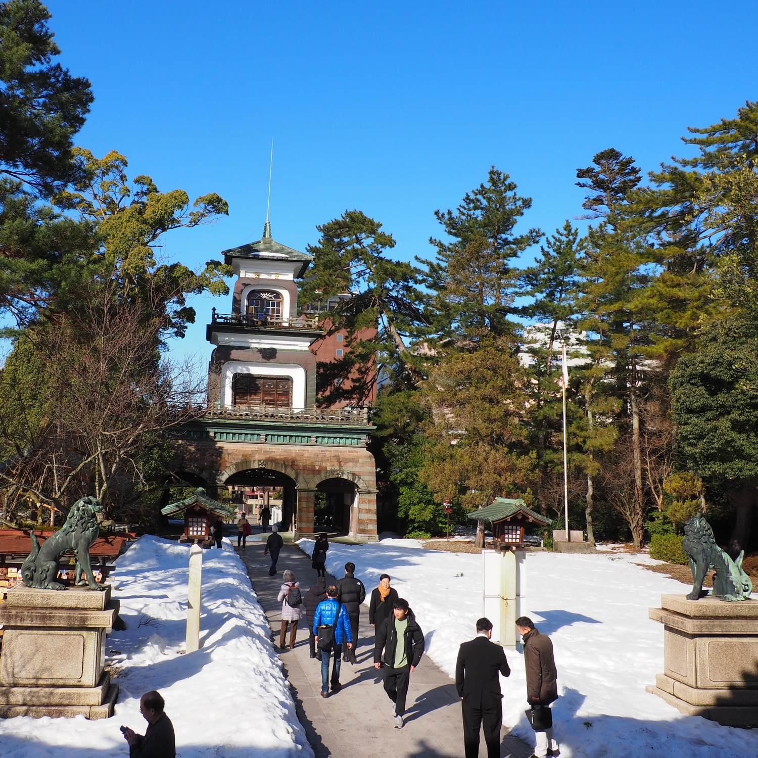 週末の中心街をブラブラ歩き「ネタ」仕入れです。今シーズン最強寒波の雪も道路はすっかり解けてますが、広場や歩道では残ってました。まずは足元不安定で駐車場未除雪の「尾山神社」です(笑)