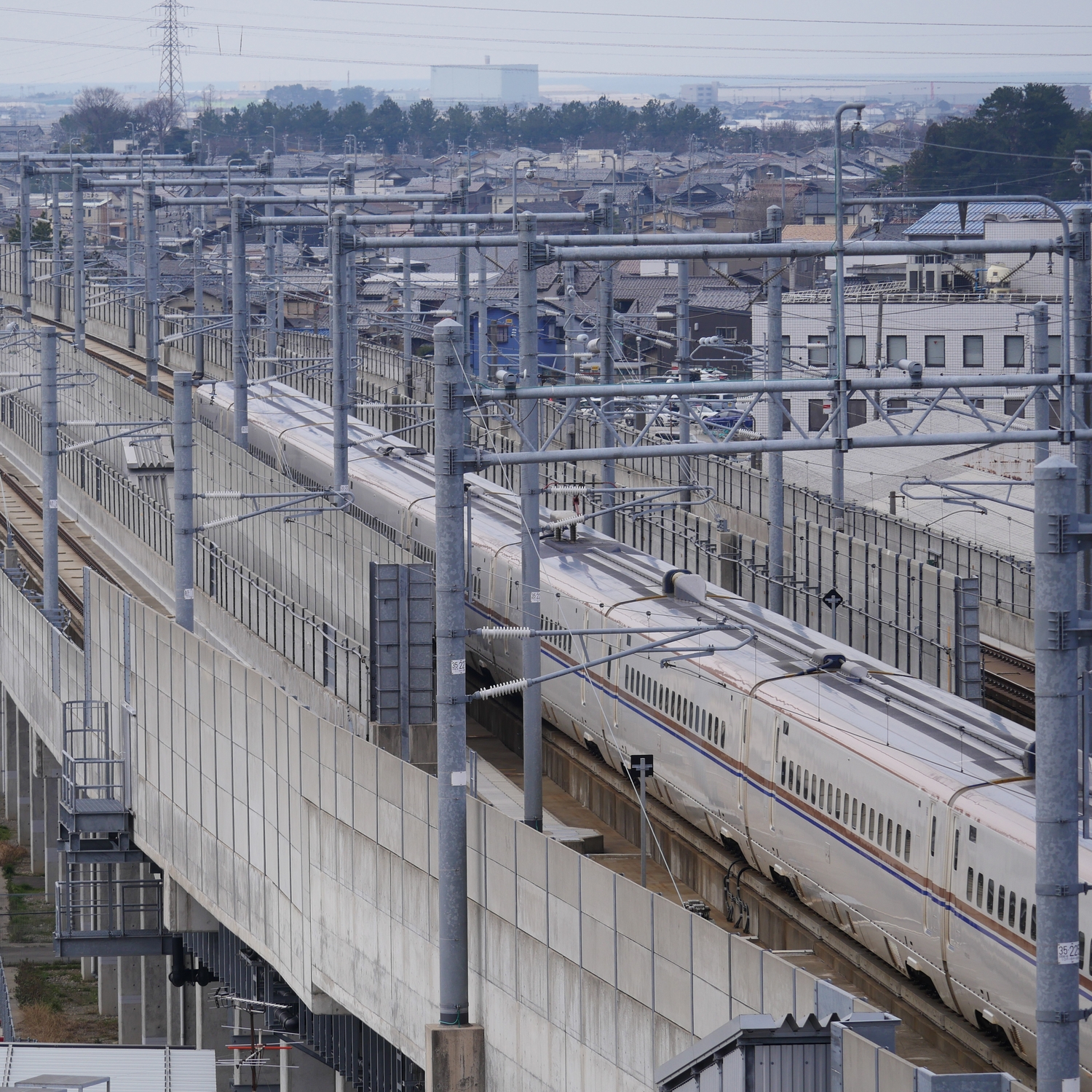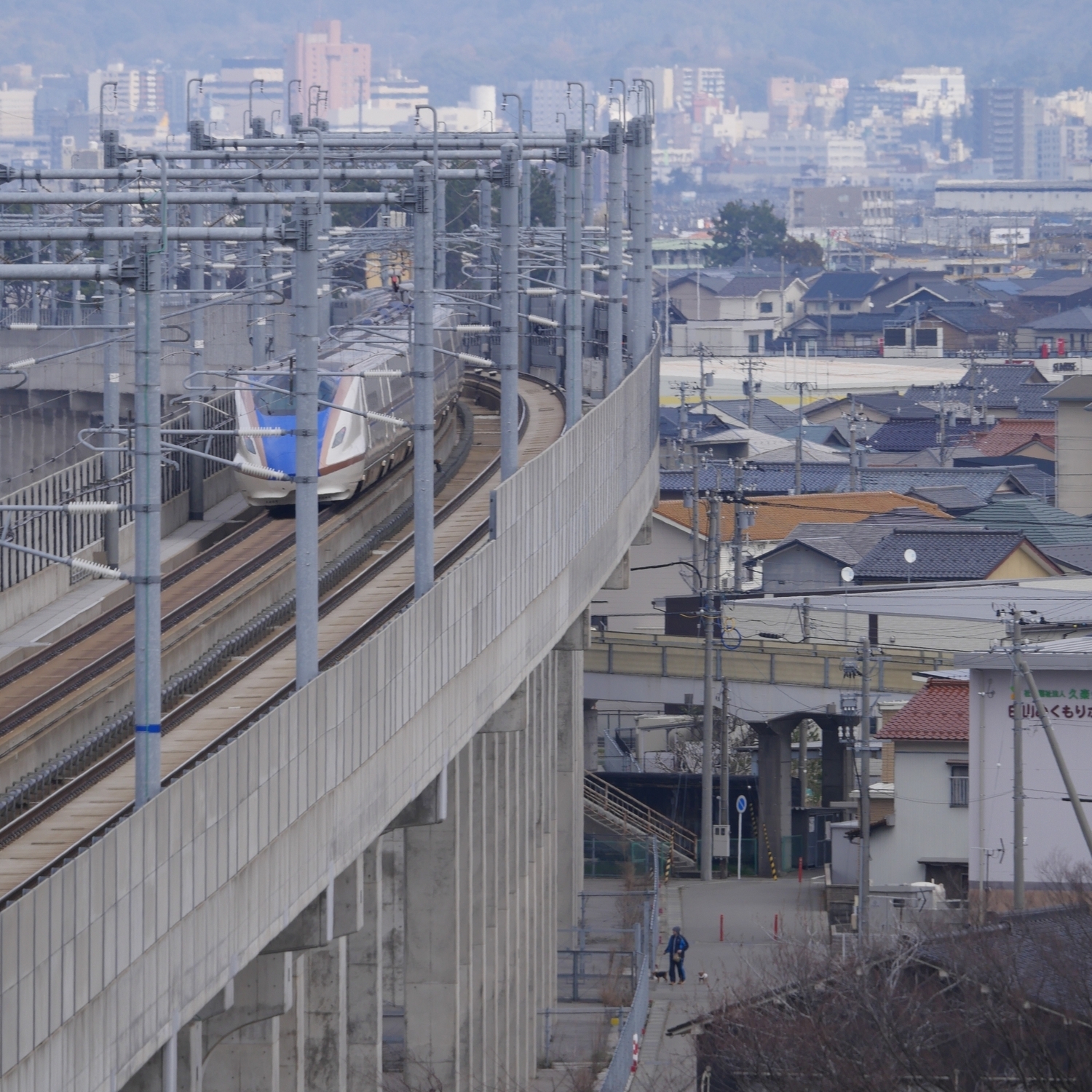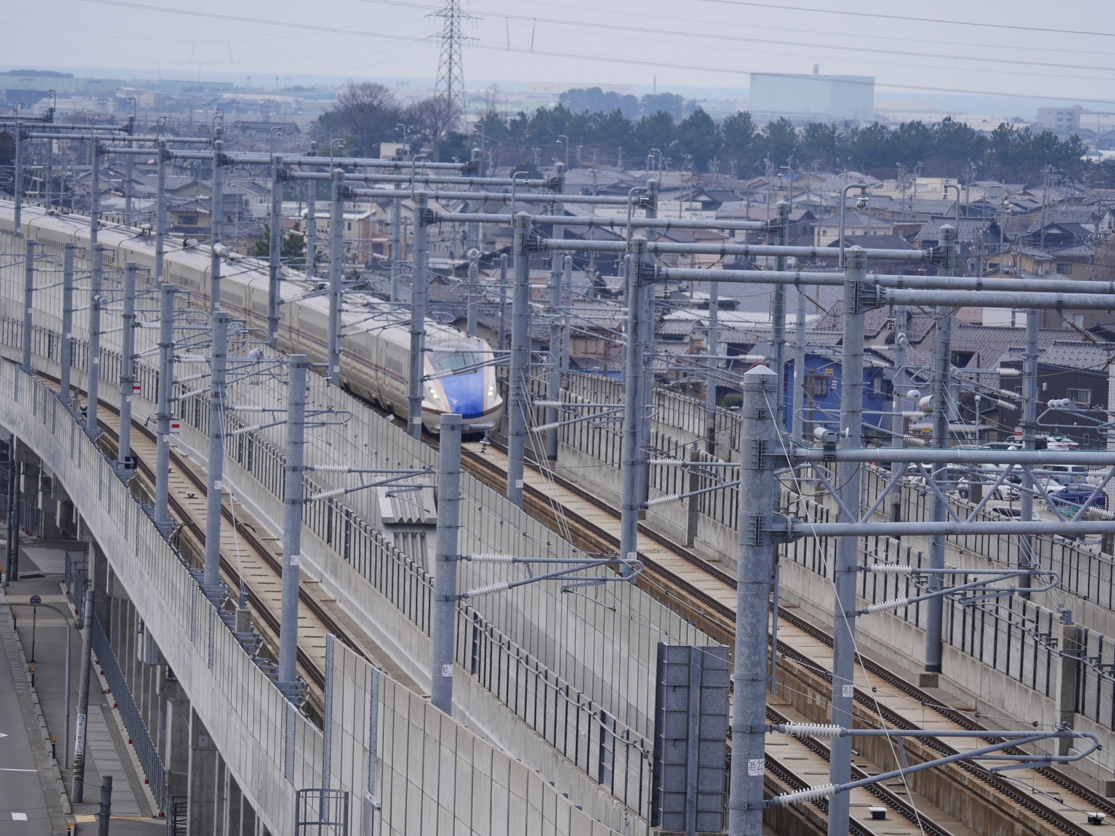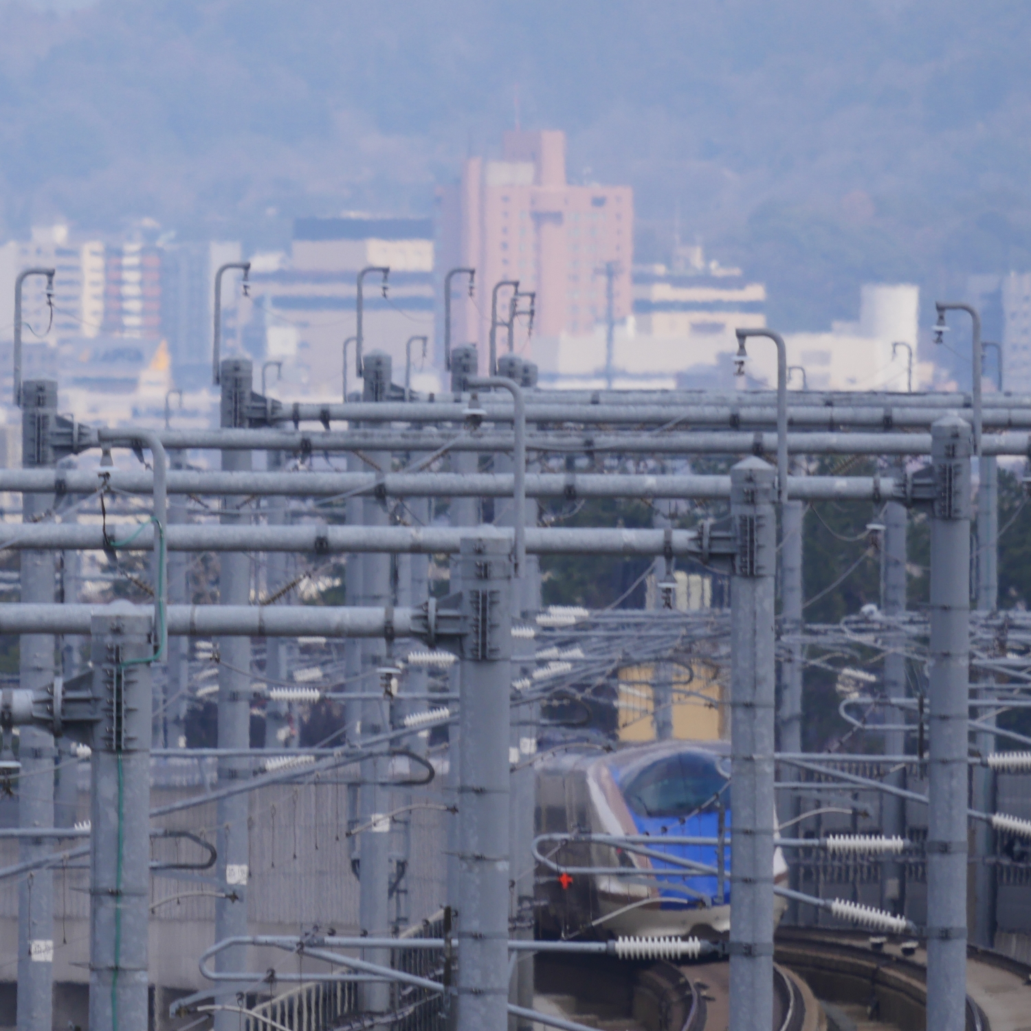 春分の日には、LEICA DG VARIO-ELMAR 100-400mm 【超望遠ズームレンズ】で、「北陸新幹線」を新幹線が見えるパーキングで撮ってきました。ここは白山や日本海、さらに金沢市内が見える撮影スポットですが、この日は黄砂の影響なのかもやってました(笑)