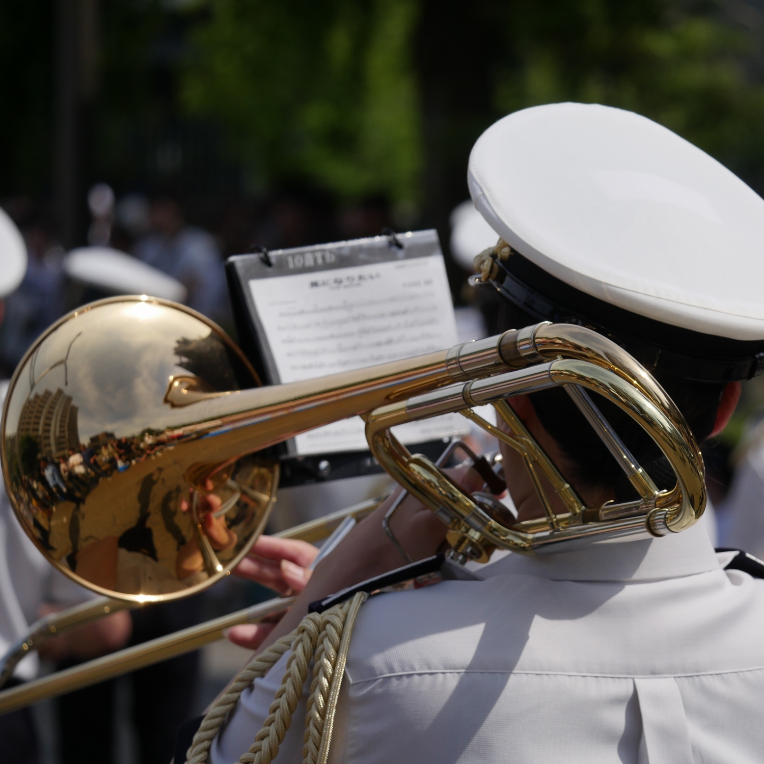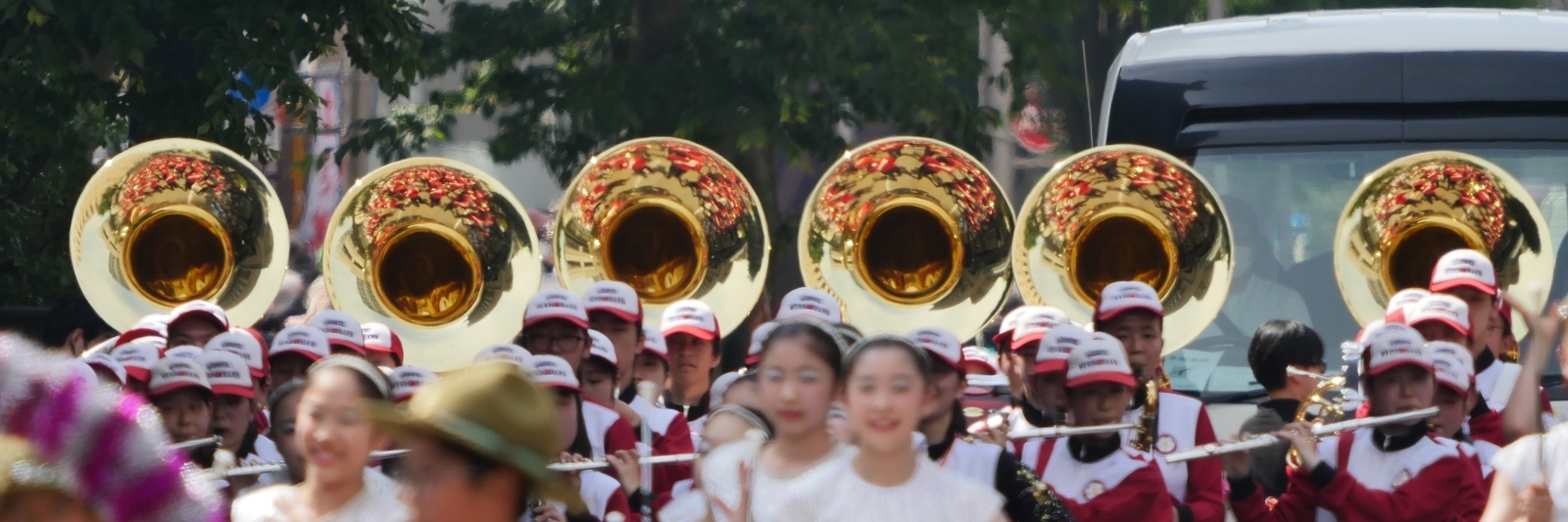 「音楽パレード」は、主に学校の吹奏楽部や警察音楽隊、自衛隊音楽隊、消防音楽隊などが参加し、行進曲を演奏しながらパレードします。その堂々とした演奏は、沿道に集まった観客を魅了します。特定の演技場所では、吹奏楽隊が隊列を組んで動きながら演奏する「ドリル演奏」を披露します。総勢数百名が一斉にダイナミックな演技を繰り広げ、迫力満点です。