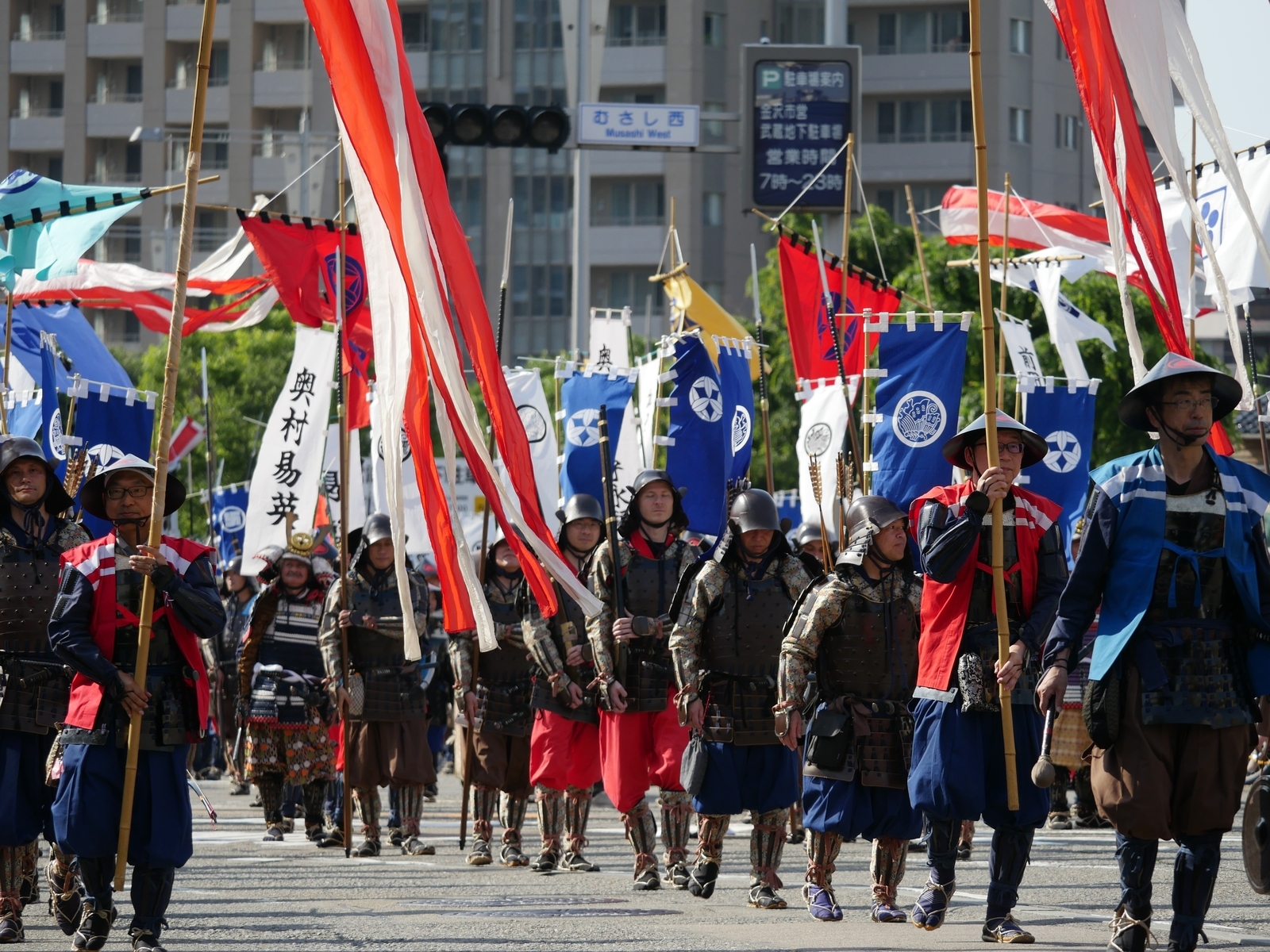 石川県金沢市で毎年6月の第1土曜日を含む金・土・日の3日間で開催される、金沢市最大のイベントです。加賀藩の礎を築いた藩祖・前田利家公が天正11年(1583年)に金沢城に入城した偉業を偲んで開催されます。豪華絢爛な「百万石行列」をメインに、400年以上にわたりこの地に受け継がれてきた伝統文化が賑やかに繰り広げられる、勇壮かつ華麗な祭りです。
