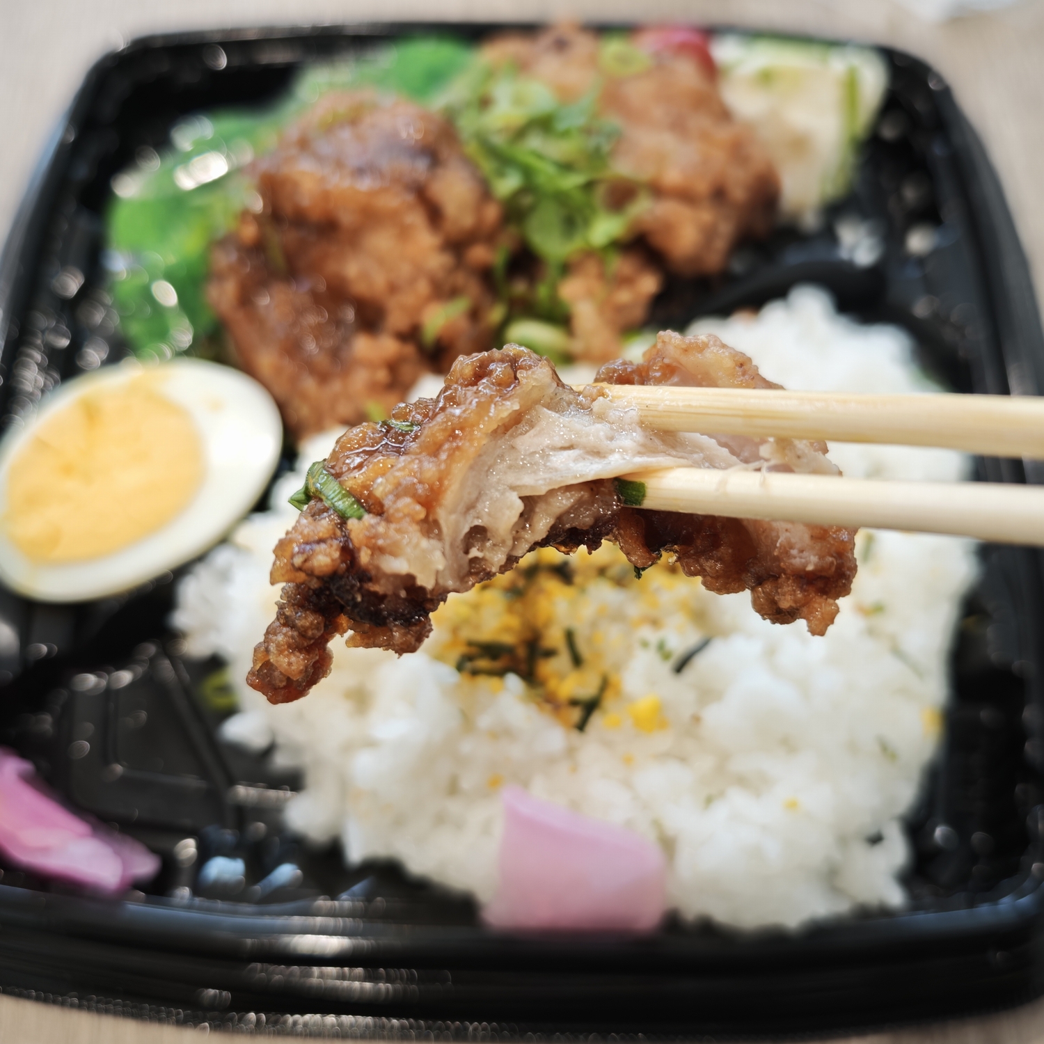 土曜日は、おなじみどんたくの「]大粒鶏もも唐揚げ弁当」で、今回は「中華ねぎソース」です。お供は、鶏だしライスPHOヌードルで、おいしく頂きました(笑)