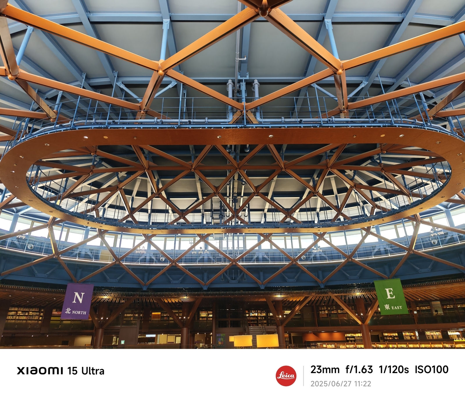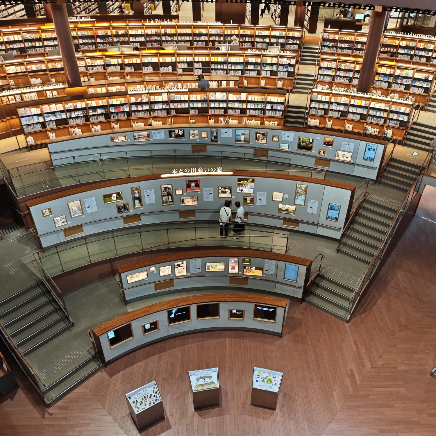 外観は、大きな円形をしており、まるでドーム状の図書館といった印象を与えます。この円形デザインは、内部空間にも連続しており、開放感のある広々とした空間を作り出しています。