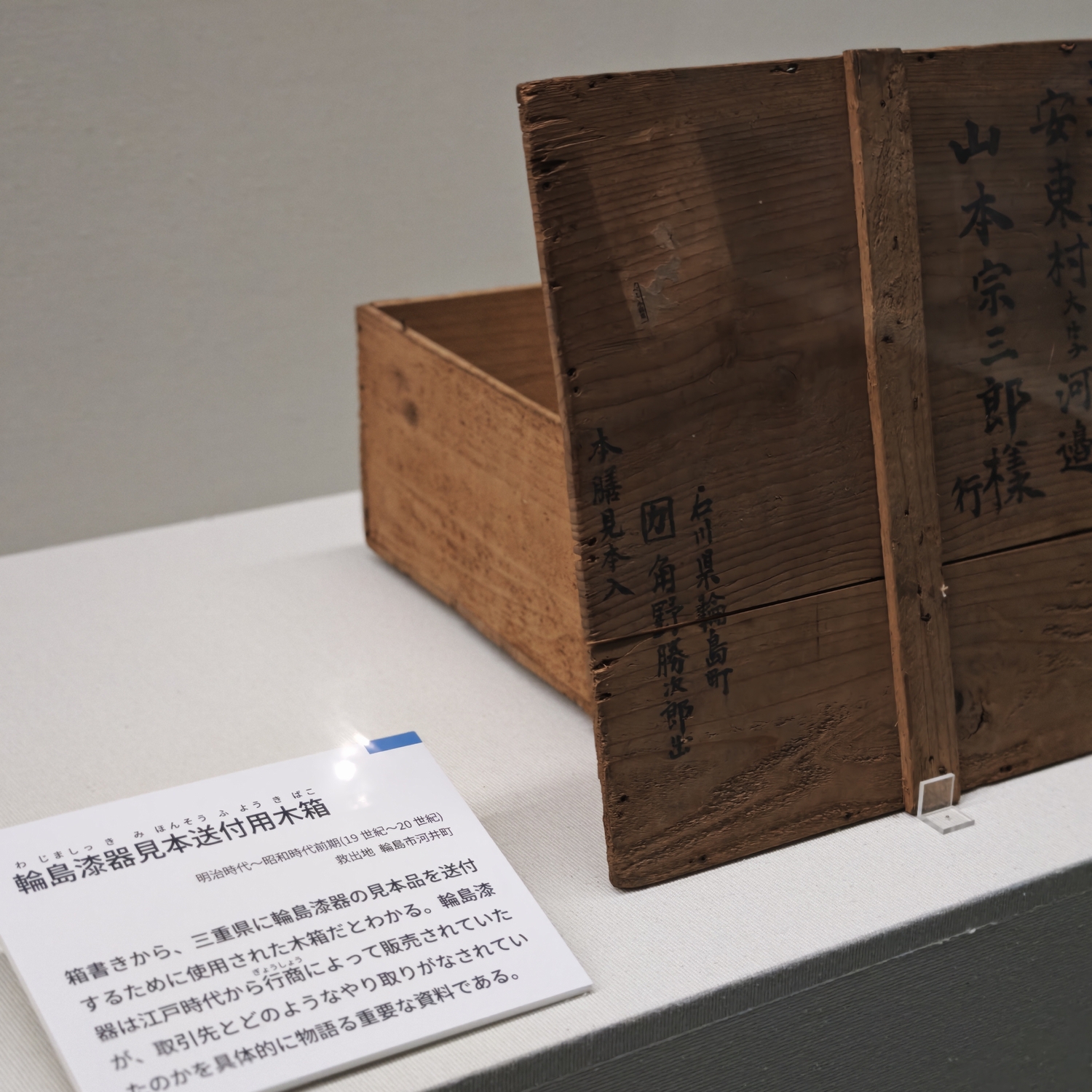輪島塗の職人宅に伝わった資料:輪島塗の産地である輪島市では、多くの漆器工房や職人宅が被災しました。この章では、職人たちが製作の見本として使っていた木箱や、製品の図案などが展示されます。これらは、輪島塗の技術やデザインの変遷を知る上で貴重な資料です。