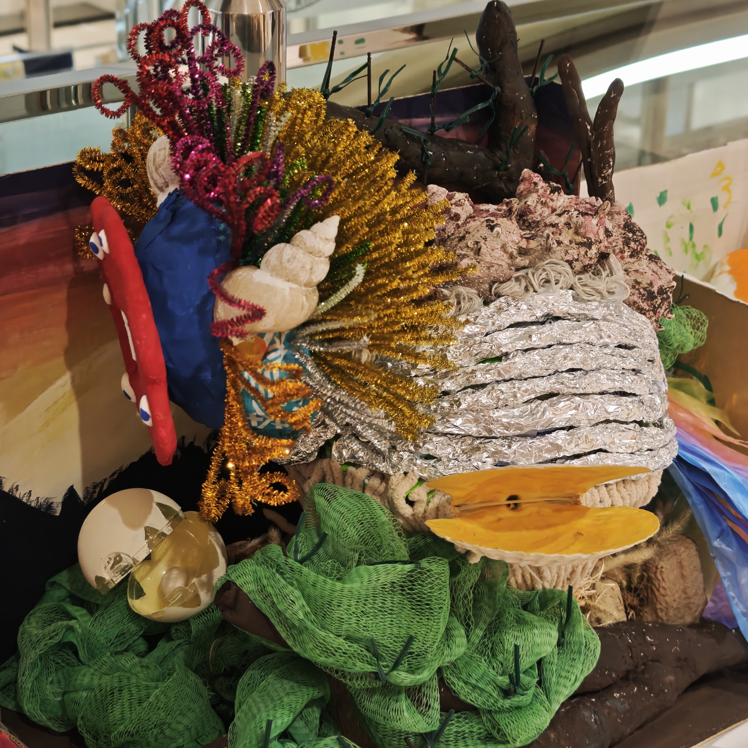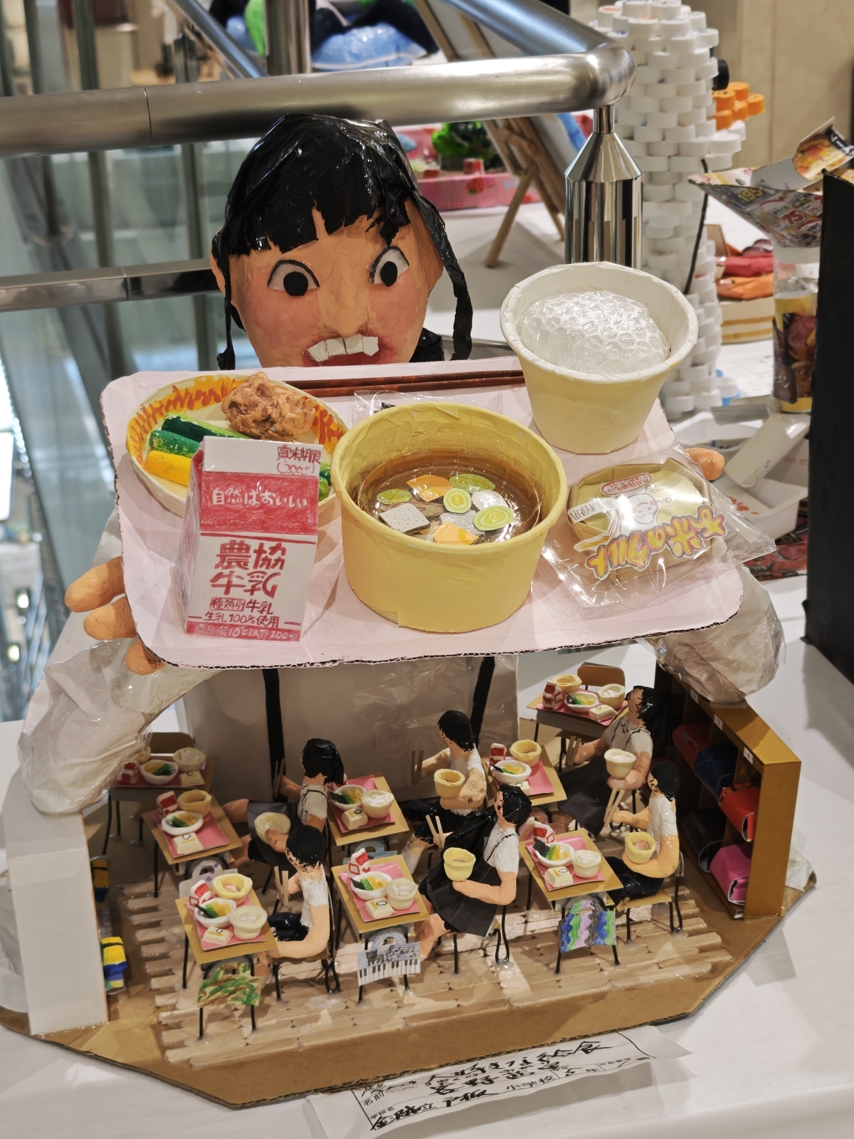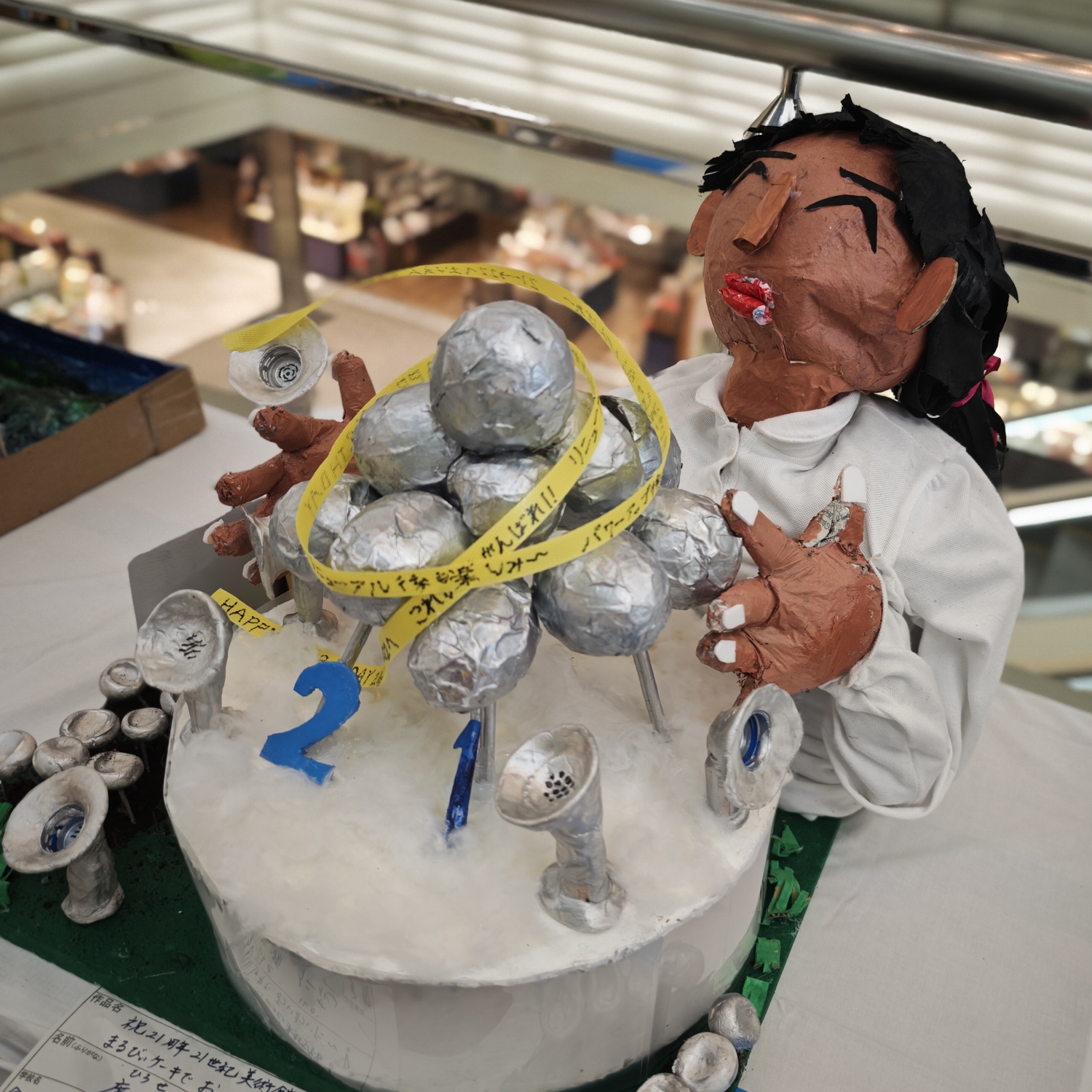 コンクールのテーマは「身近な不用品を使った工作」です。ペットボトルや空き箱、牛乳パックなど、普段は捨てられてしまうようなものが、子どもたちの手によってユニークな作品へと生まれ変わります(笑)