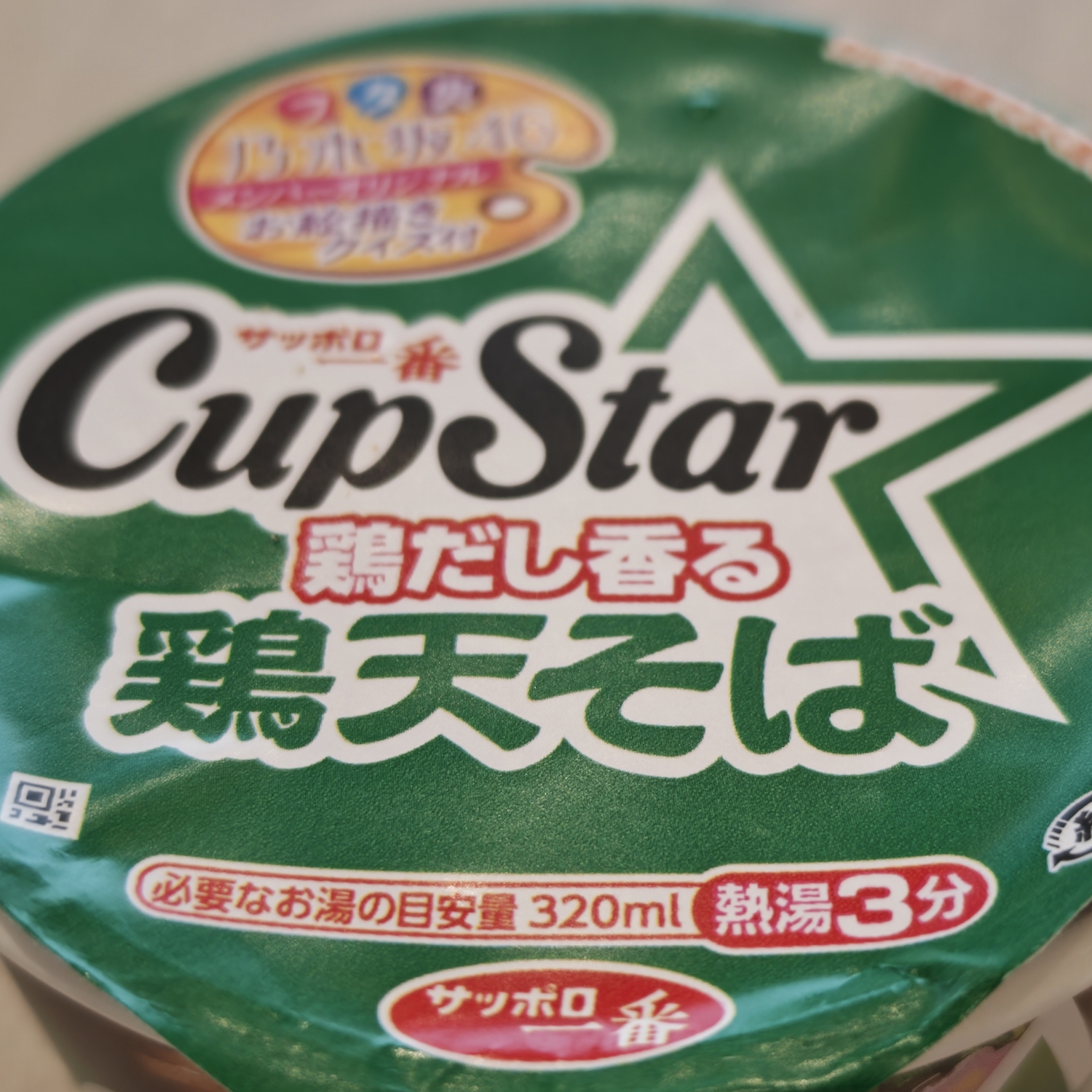 サッポロ一番の「カップスター 鶏天そば」は、和風の出汁と鶏だしの風味が特徴的なカップそばです。挽きぐるみそば粉(そばの実を殻ごと挽いた粉)に、粗挽きのそば殻を配合しており、やや幅広で、適度な歯応えのあるそばに仕上げられています。和風だしにチキンのうまみを合わせることで、コクと風味豊かな「鶏だし」が香るつゆに仕立てられています。