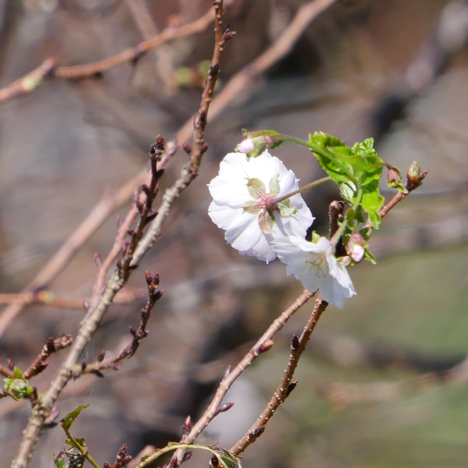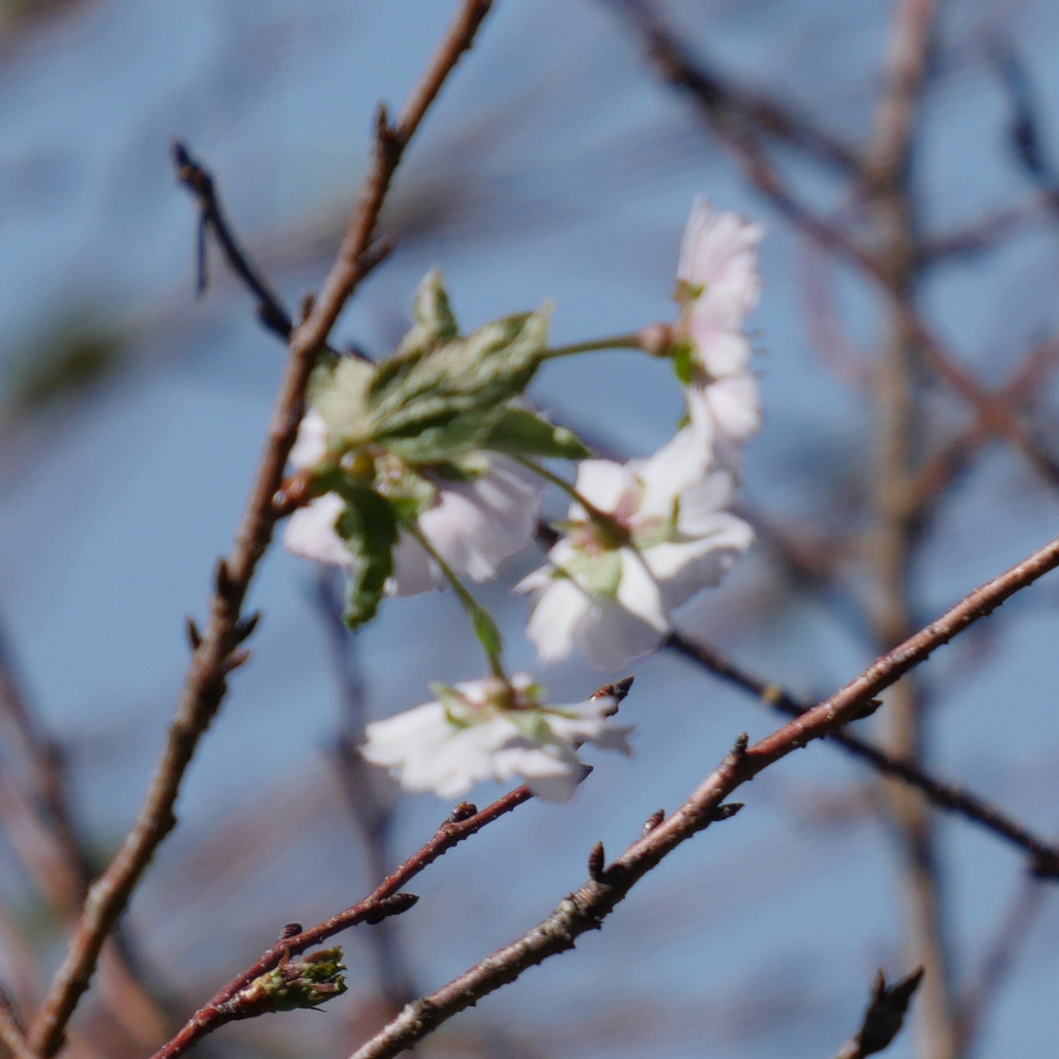 十月桜(ジュウガツザクラ)は、バラ科サクラ属のサクラの栽培品種の一つです。秋から冬、主に9月頃から咲き始め、暖地では冬の間も少しずつ断続的に咲き続けます。同様に秋から冬に咲く桜として「冬桜」などがあり、十月桜も含めて広義の「冬桜」と総称されることもあります。