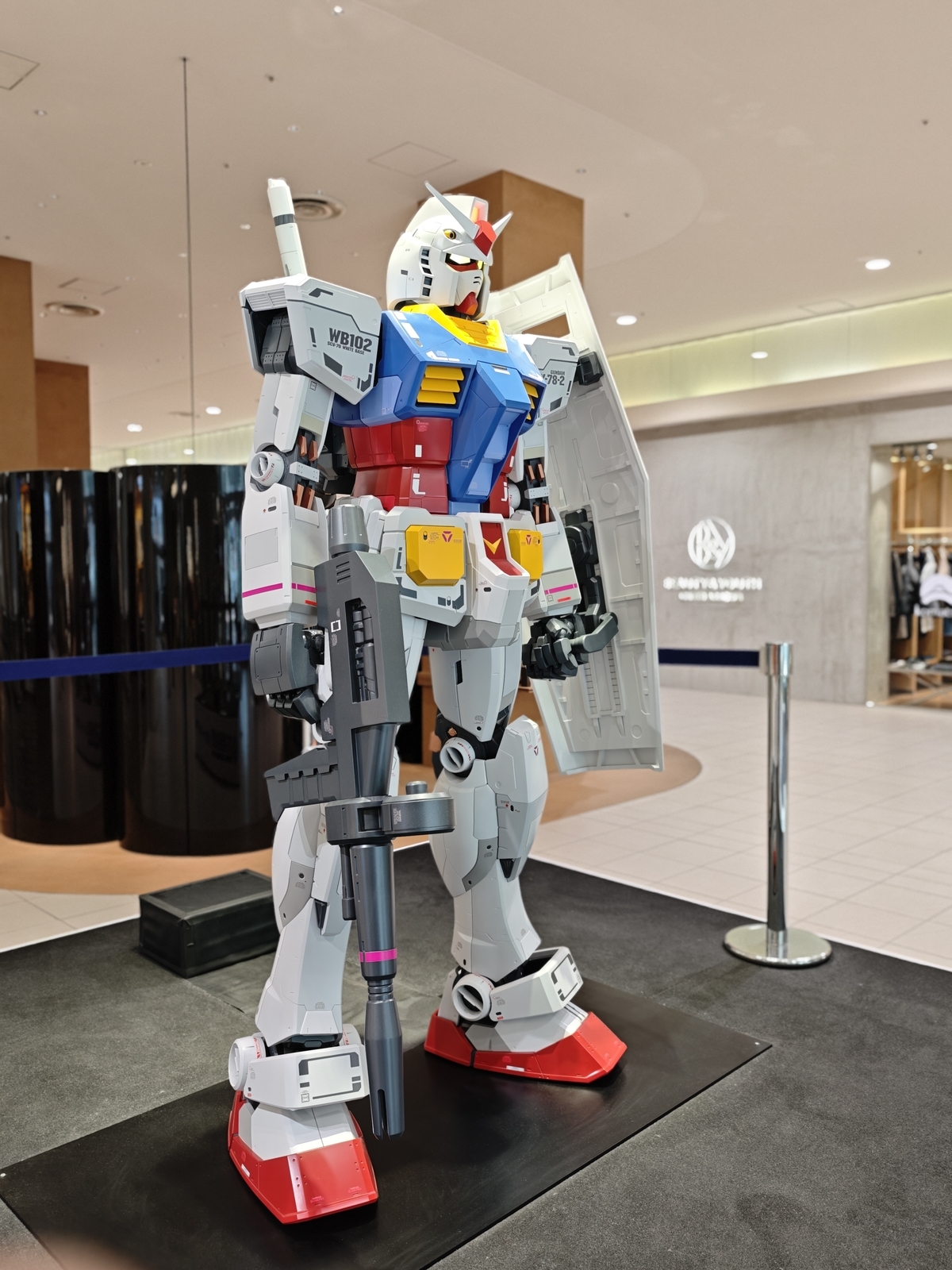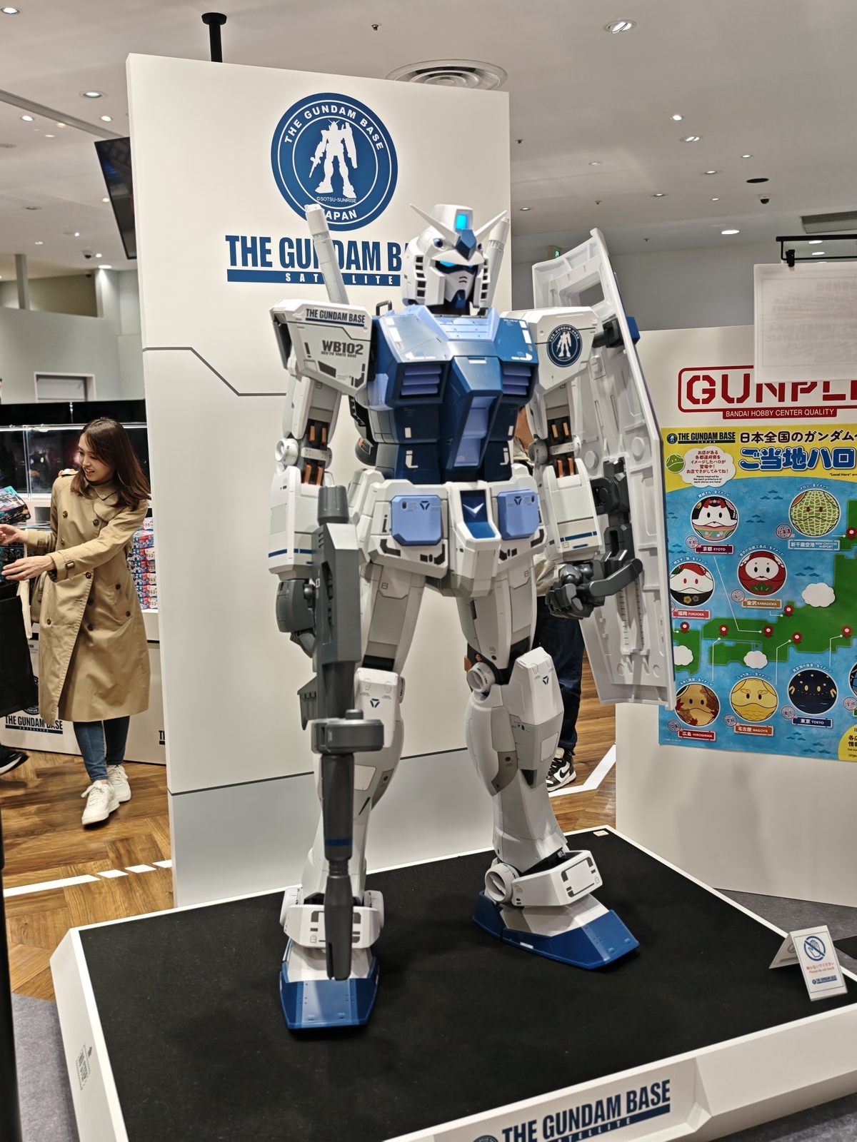 店舗の入り口付近には、1/10サイズのガンダムベースカラーのRX-78-2ガンダム立像が設置されており、記念撮影にぴったりのフォトスポットとしてファンを出迎えます。ガンダムファンだけでなく、初めて訪れる人やファミリー層にも楽しんでもらえる仕掛けです。